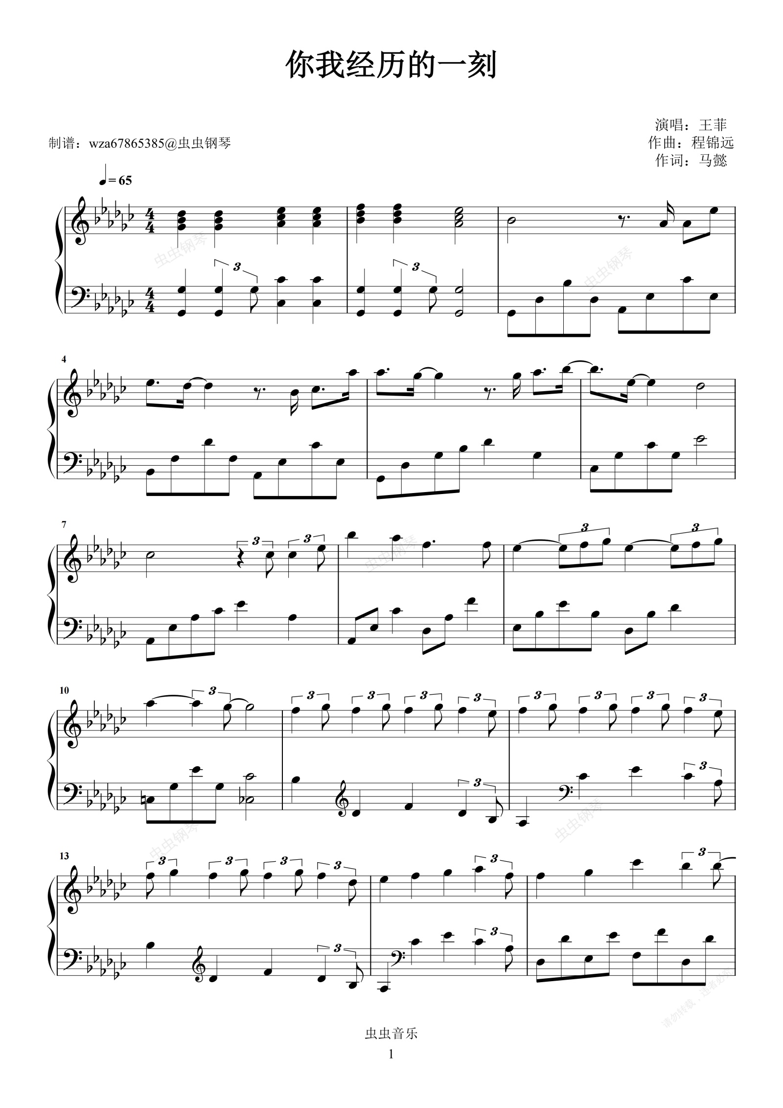 钢琴谱:你我经历的一刻