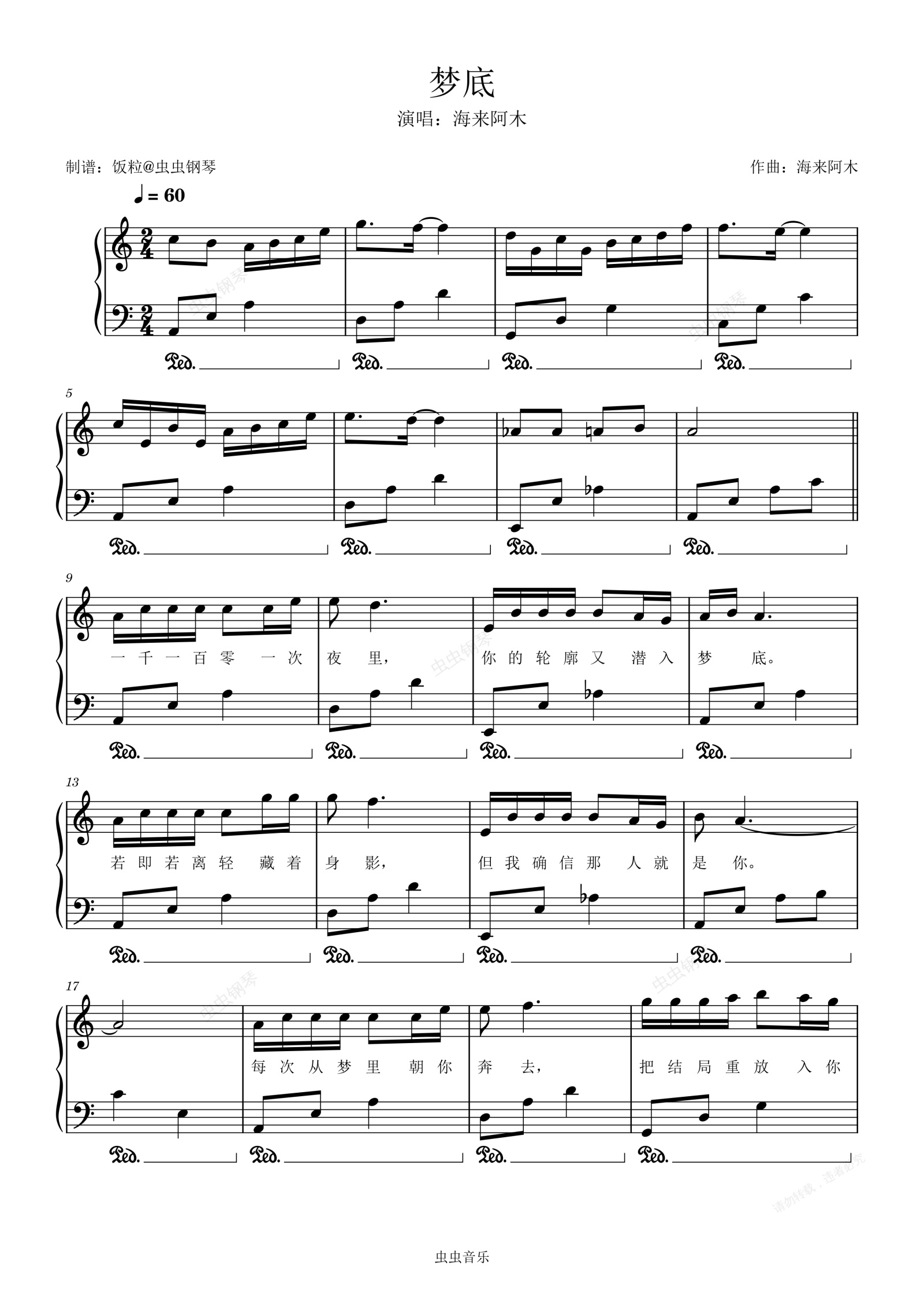 钢琴谱:梦底(2026年央视春晚歌曲,C调附歌词)