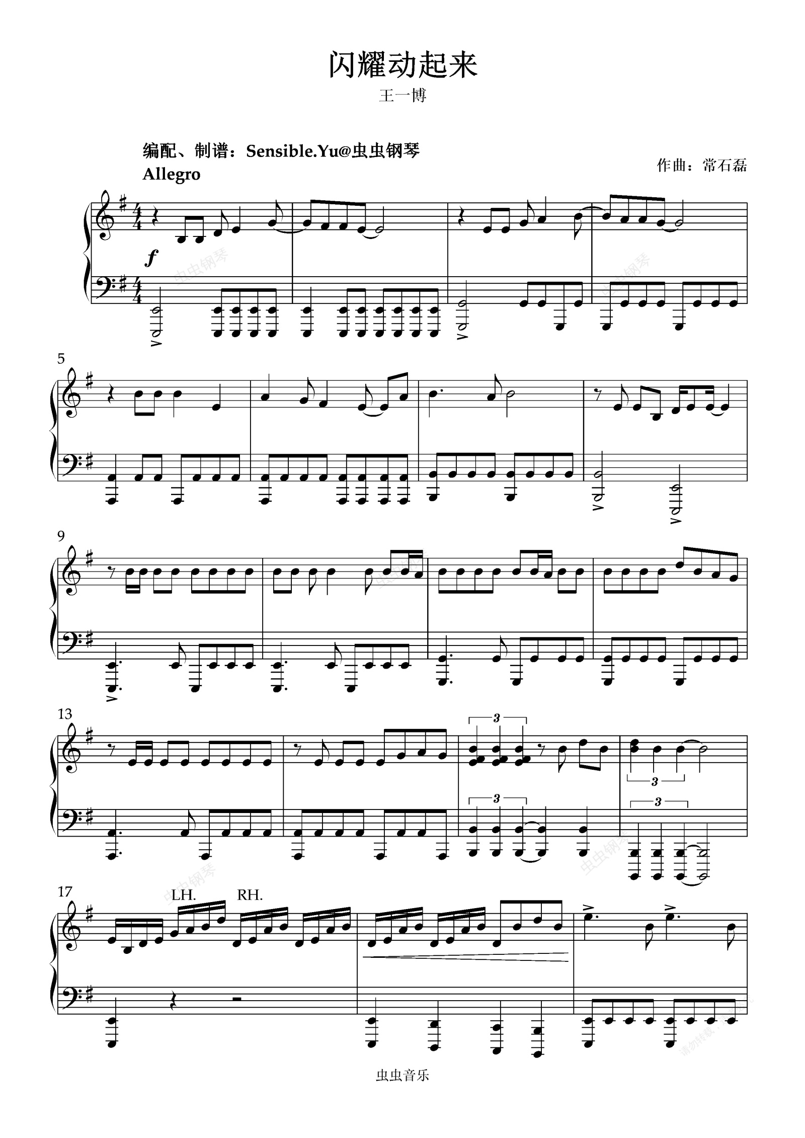 钢琴谱:《闪耀动起来》王一博(改编:Sensible.Yu)