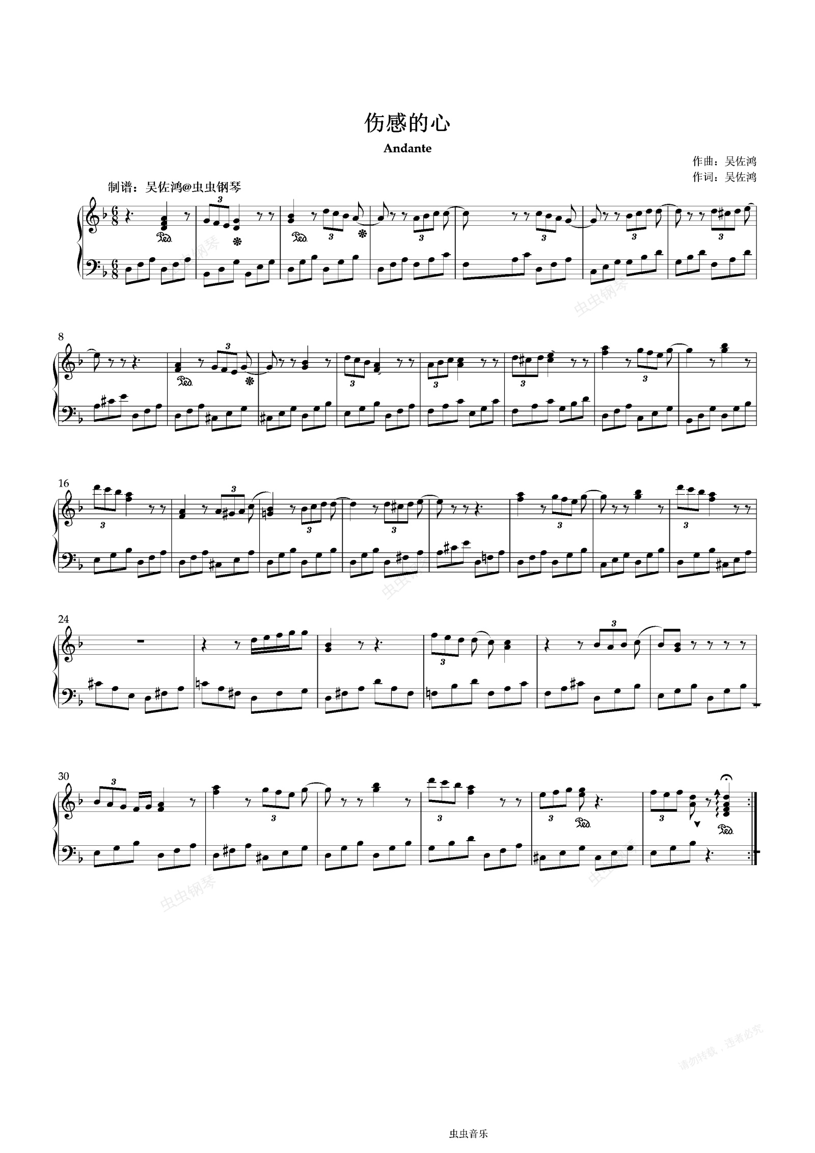 钢琴谱:伤感的心