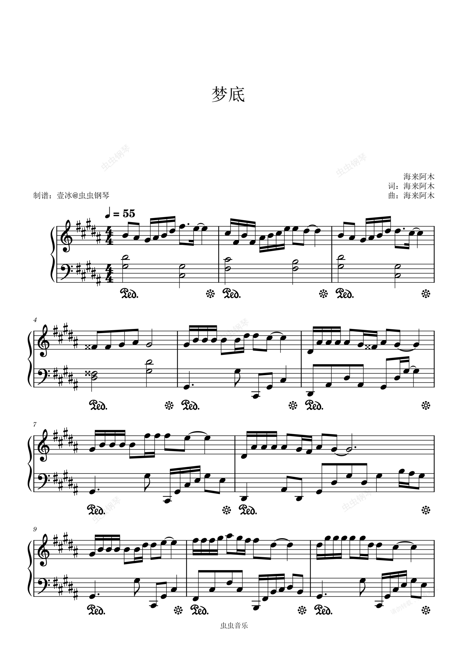 钢琴谱:梦底 - 海来阿木 原调