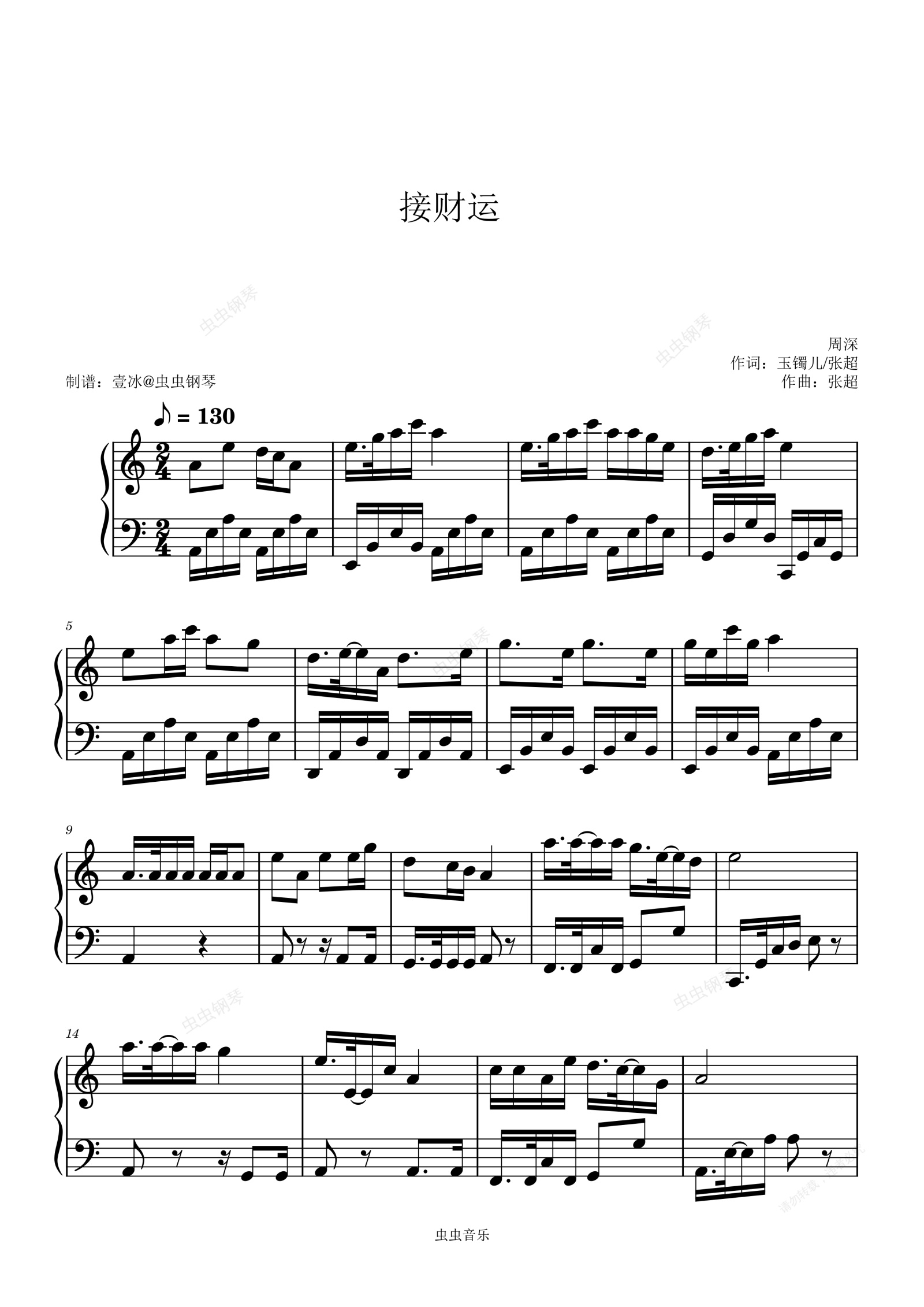 钢琴谱:接财运-周深 C调