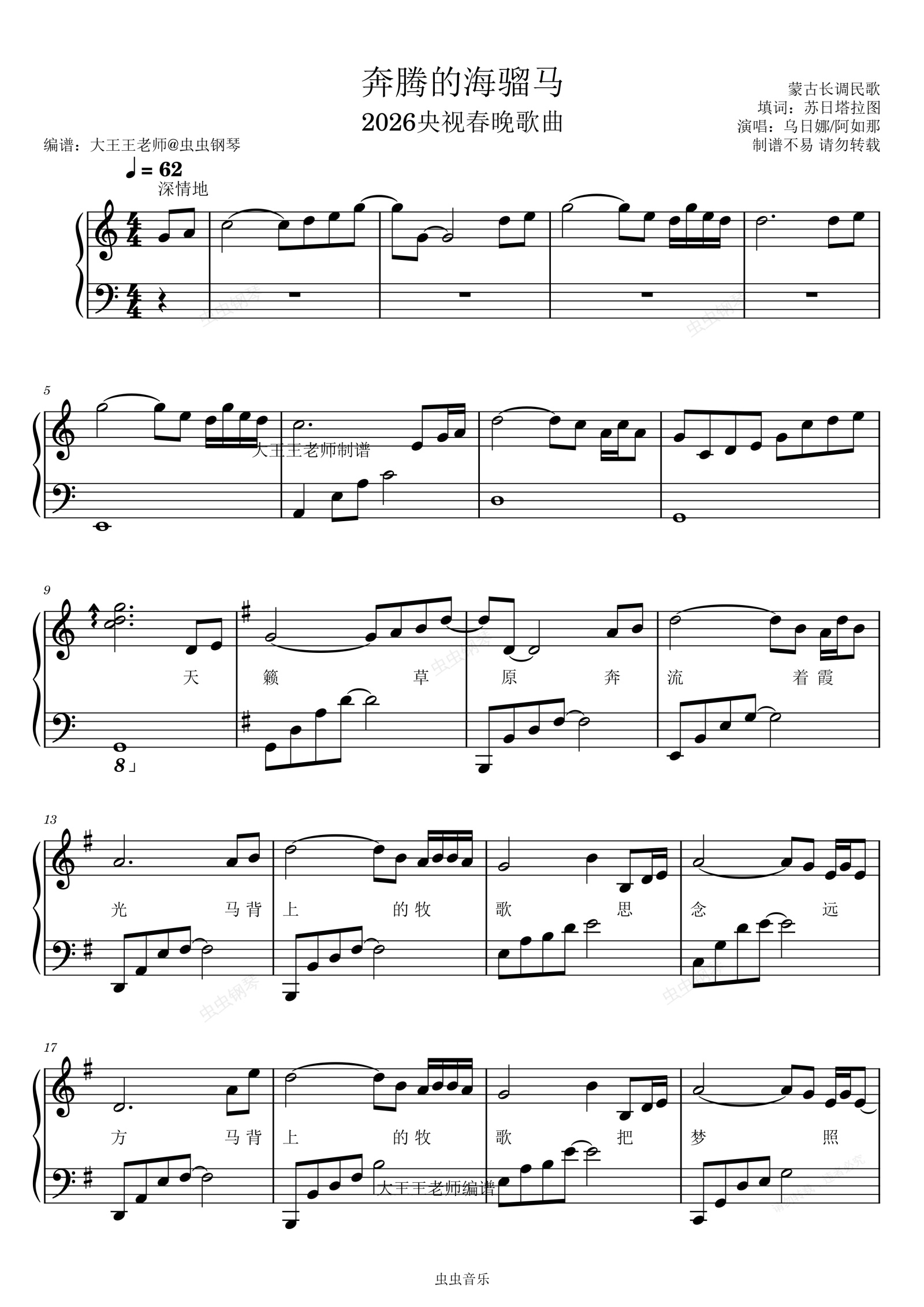 钢琴谱:奔腾的海骝马(带歌词大王王老师版)