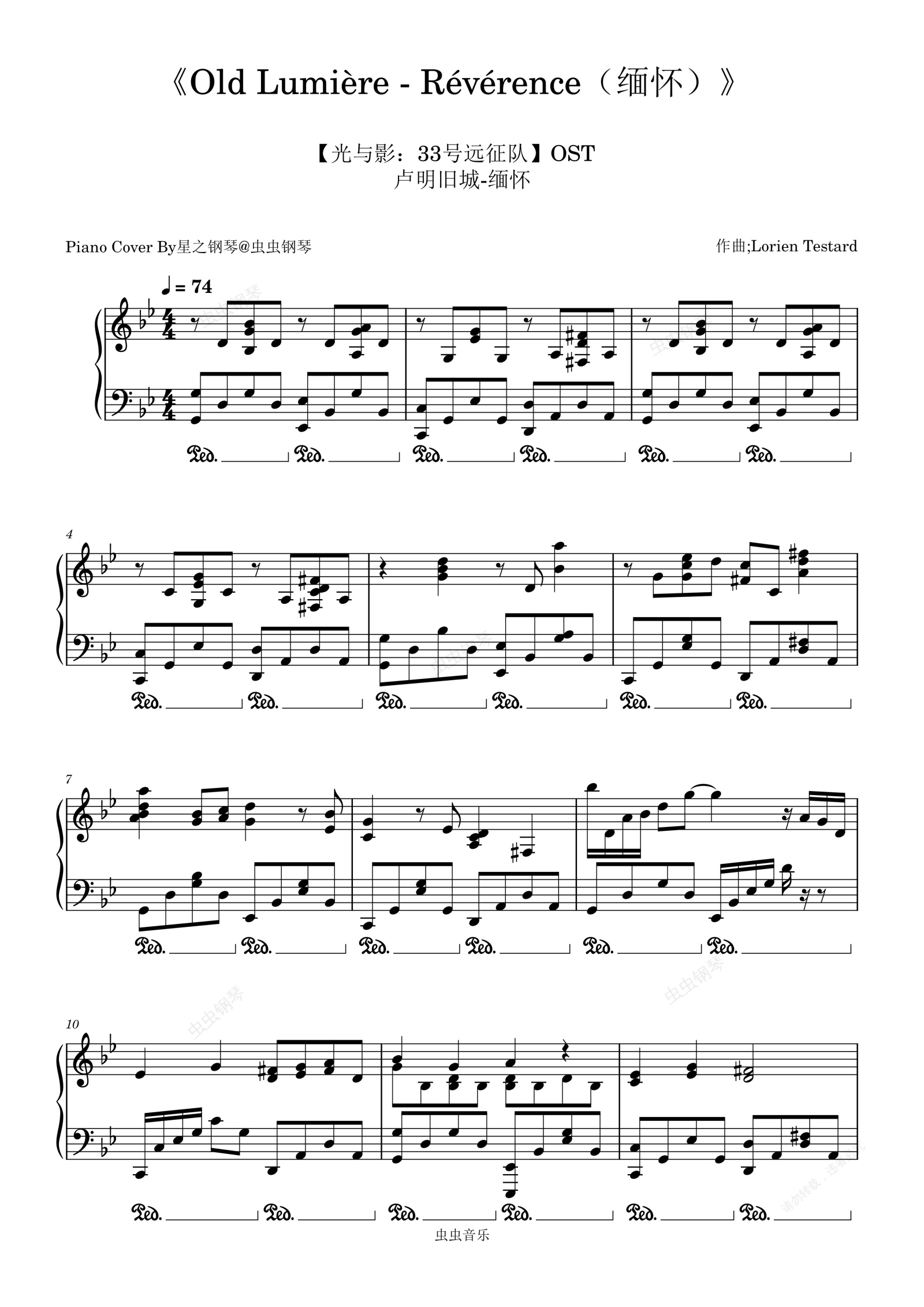 钢琴谱:【光与影:33号远征队】卢明旧城缅怀《Old Lumière - Révérence》钢琴还原独奏版~星之钢琴~