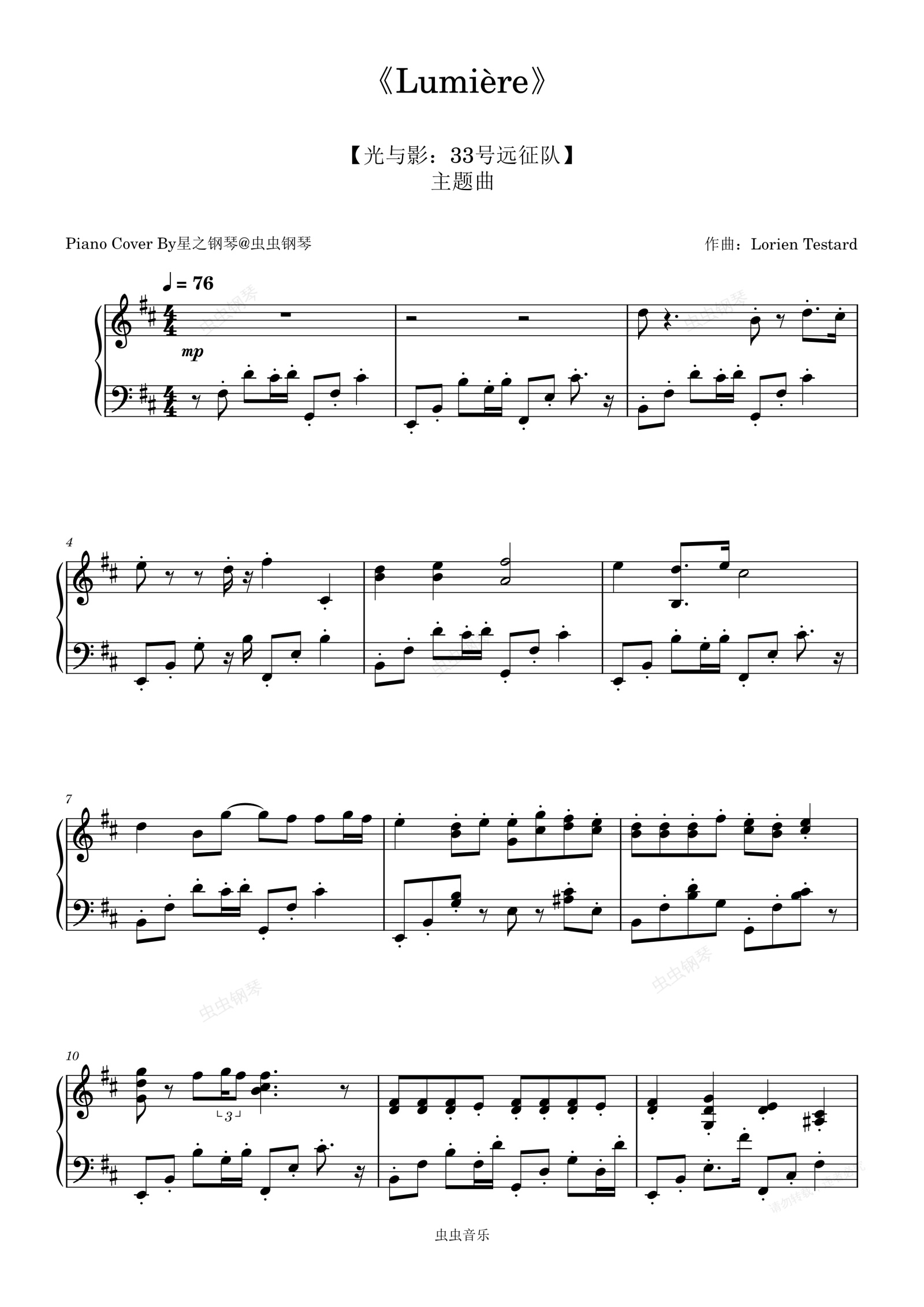 钢琴谱:【光与影:33号远征队】主题曲《Lumière》钢琴还原独奏版~星之钢琴~