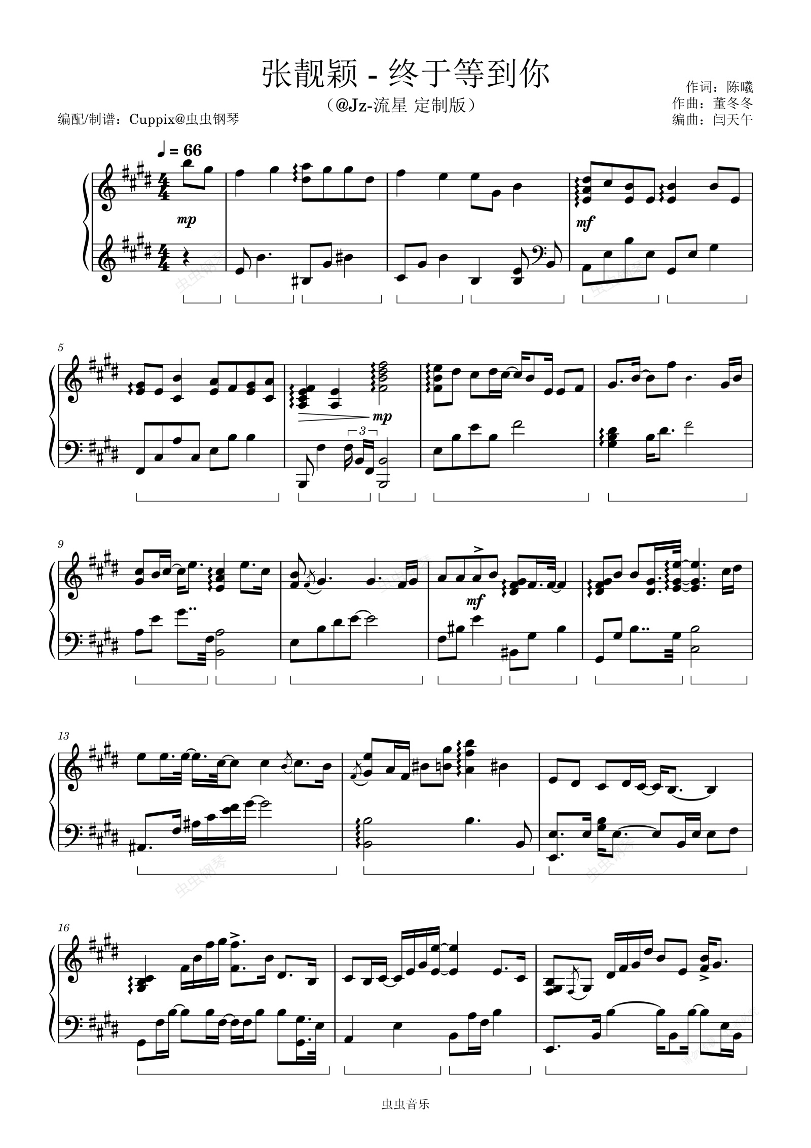 钢琴谱:《终于等到你》Cuppix编配-极致还原版