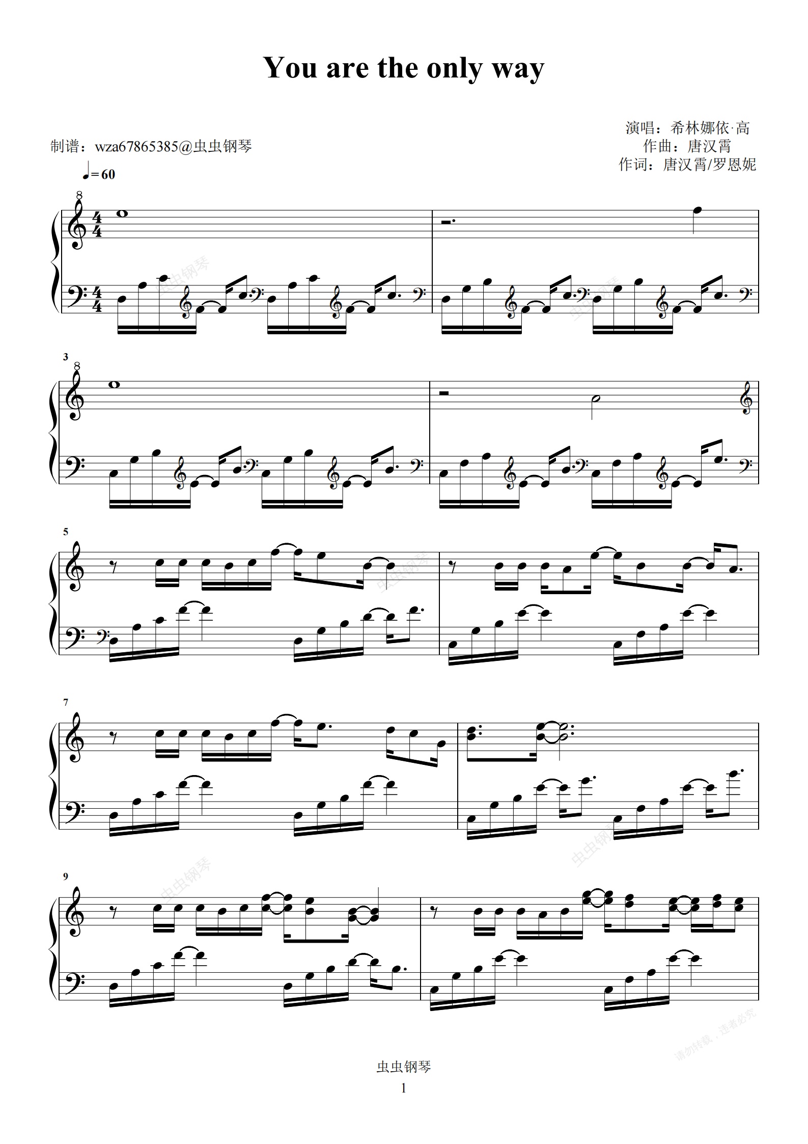 钢琴谱:You are the only way