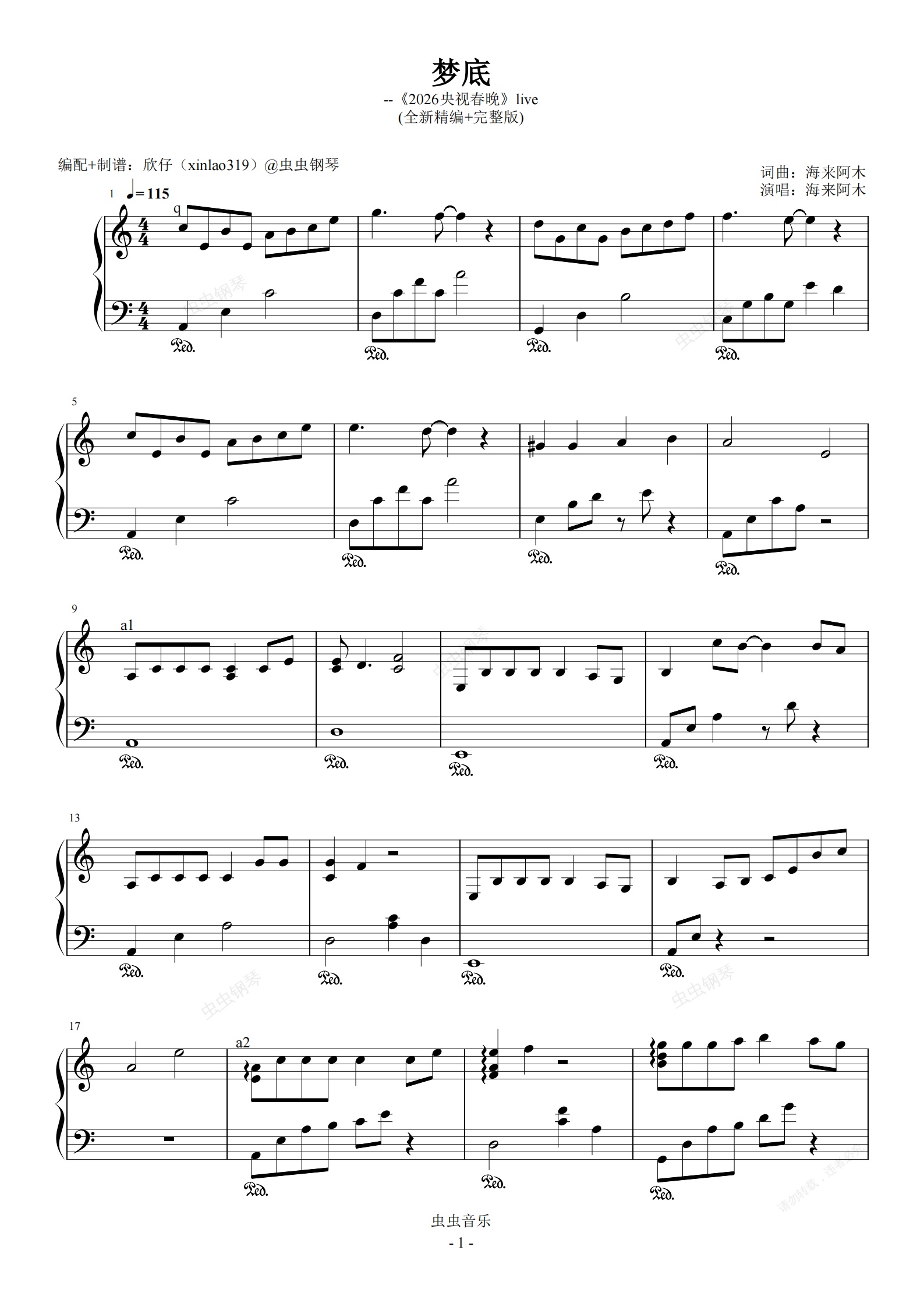 钢琴谱:梦底(a、海来阿木、《2026央视春晚》live、完整版)