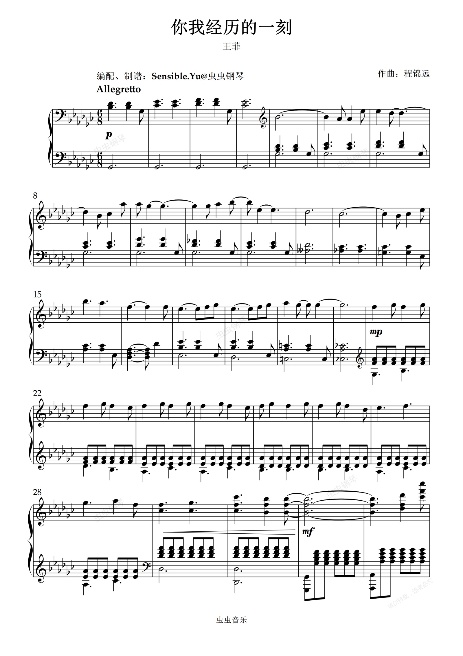 钢琴谱:《你我经历的一刻》—王菲(原调)(编配:Sensible.Yu)