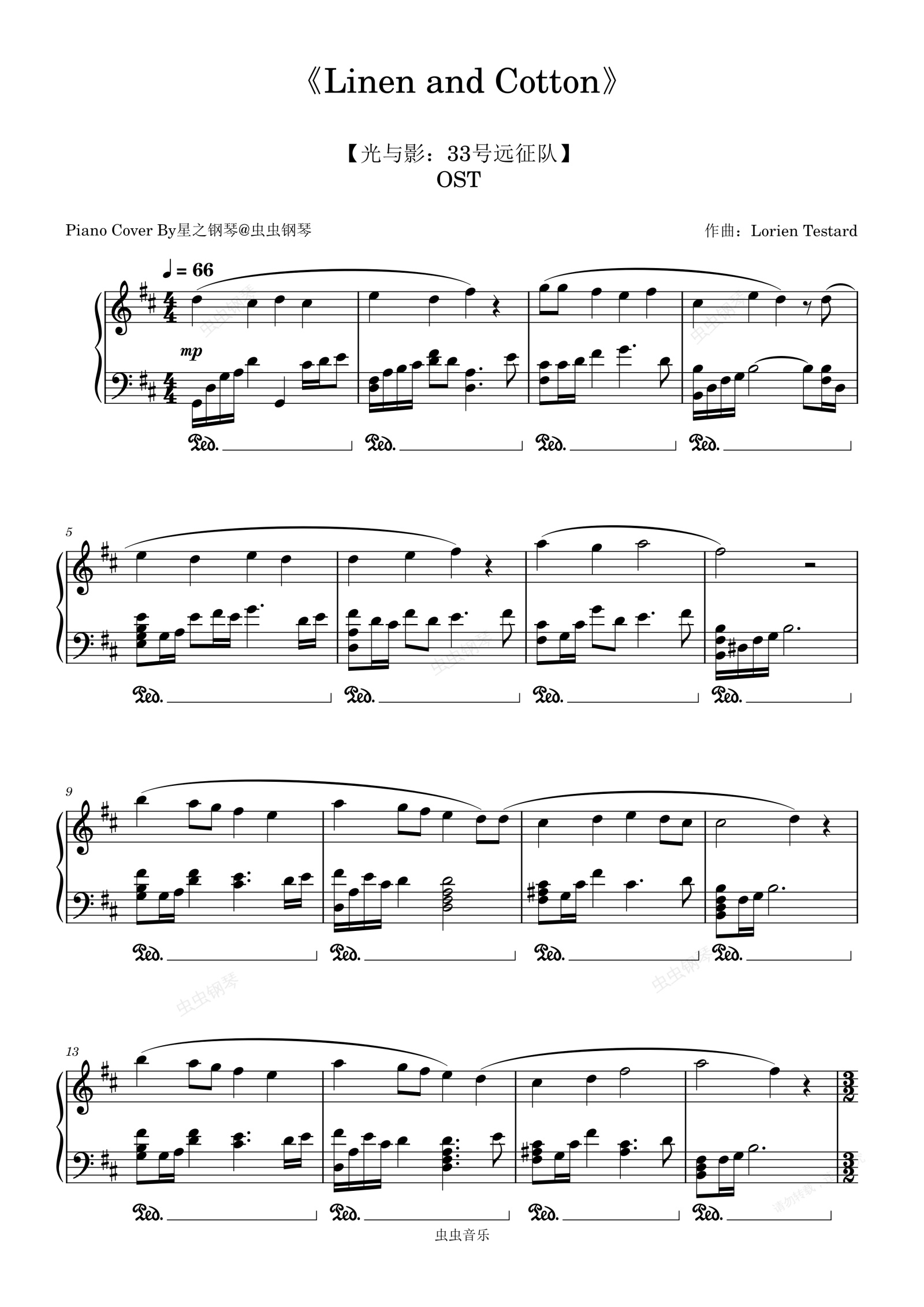 钢琴谱:【光与影:33号远征队】《Linen and Cotton》钢琴独奏版~星之钢琴~