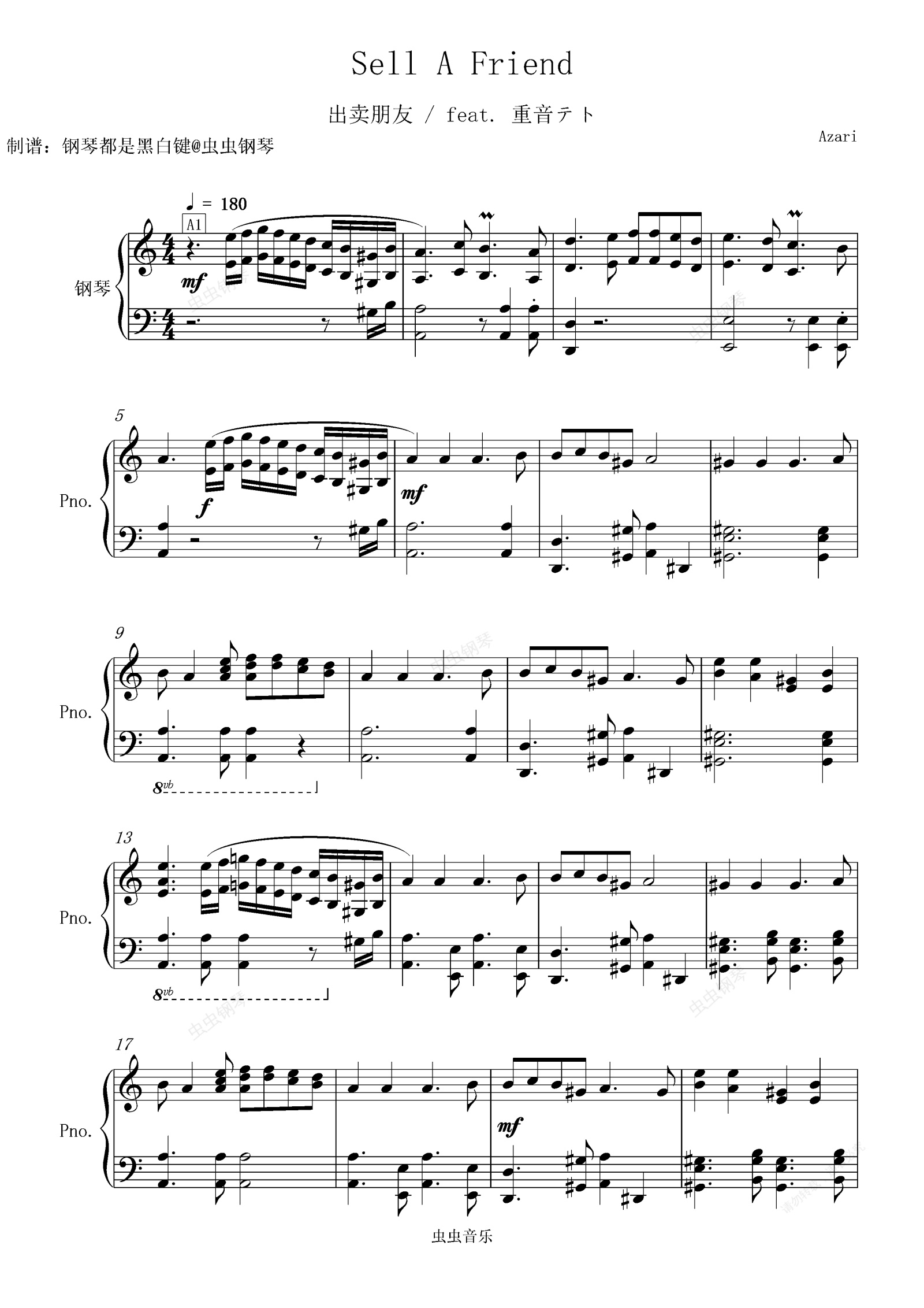 钢琴谱:【重音テト】出卖朋友/Sell a Friend