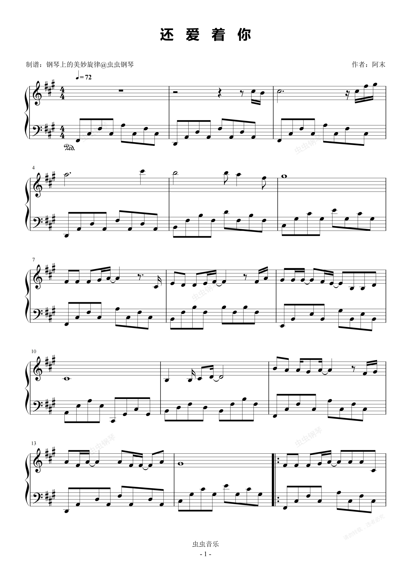 钢琴谱:还爱着你 简易版 文夫