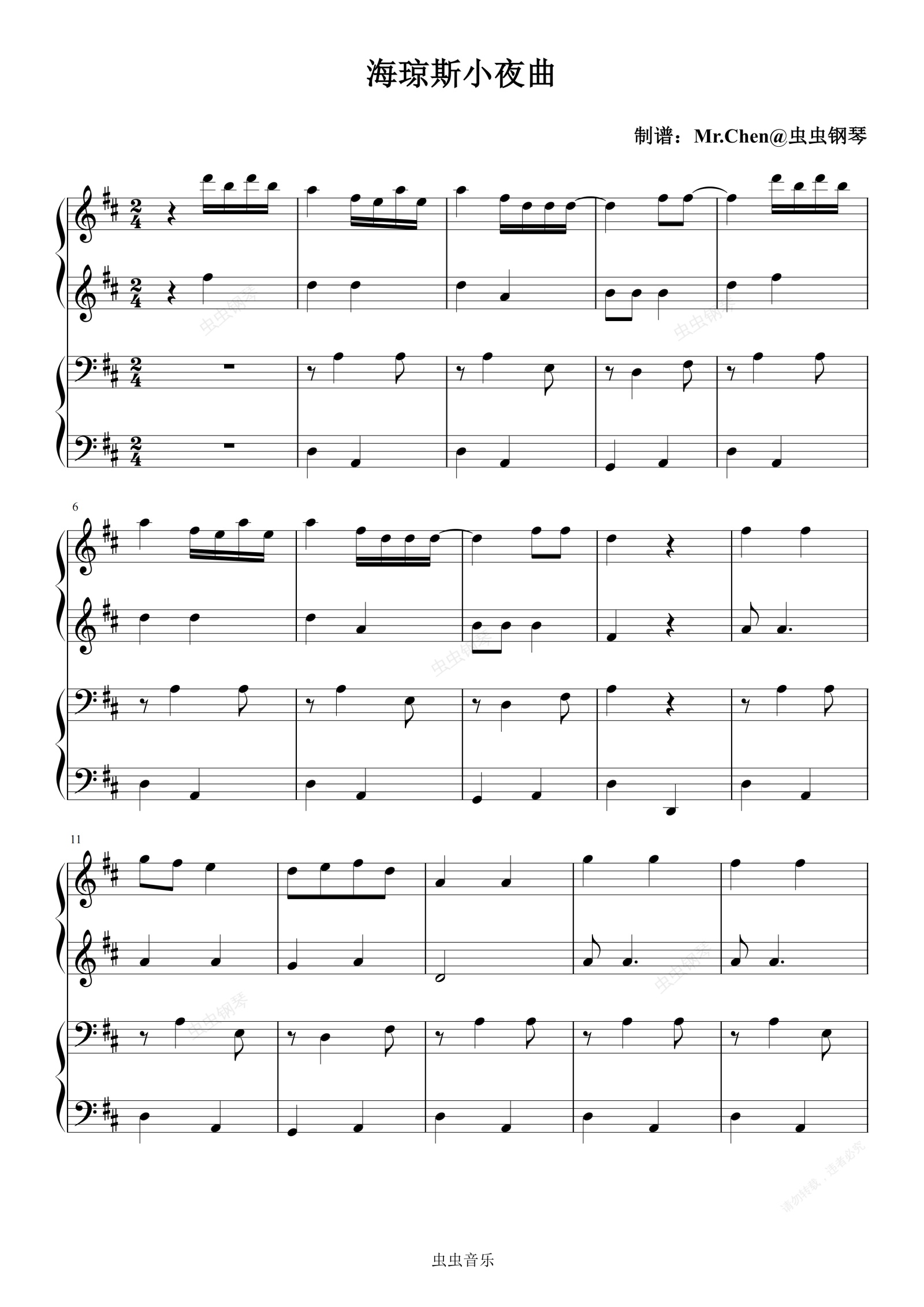 钢琴谱:海琼斯小夜曲 (四手联弹)- 英语听力小曲