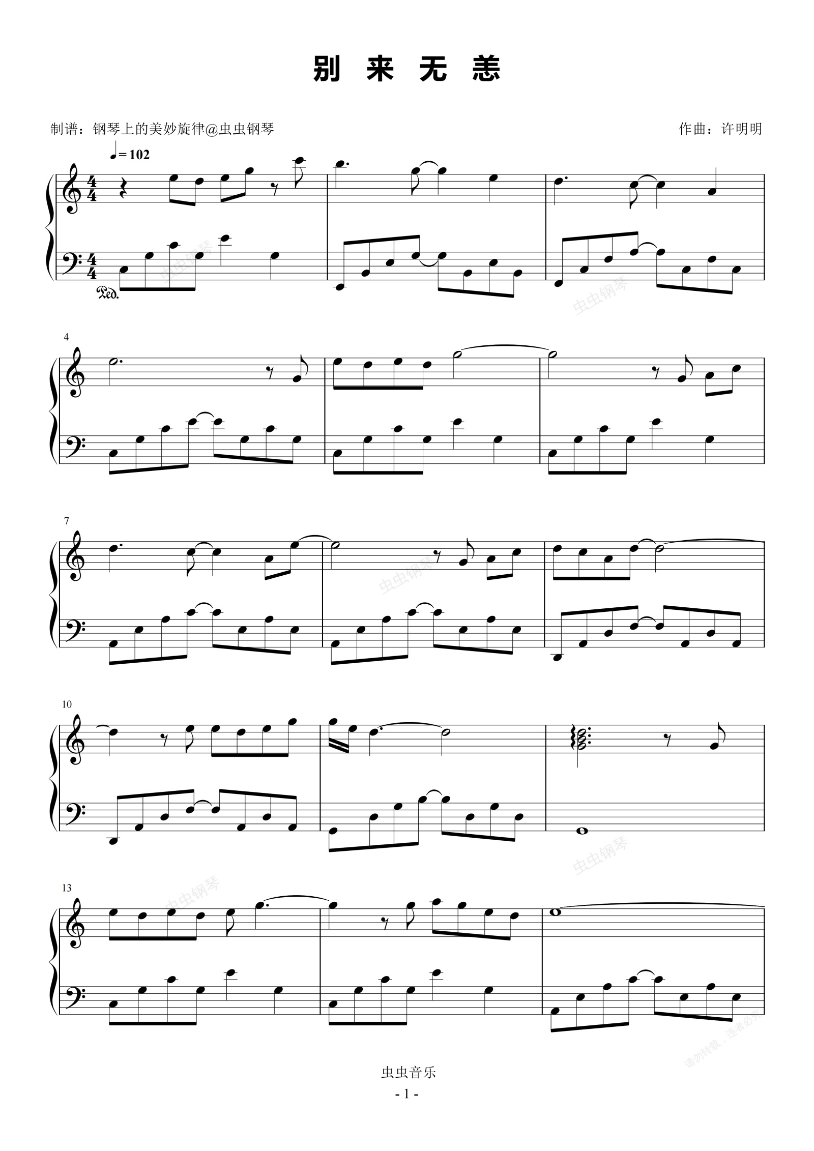 钢琴谱:别来无恙 C调简易版 毛不易 任素汐 2026年春晚歌曲