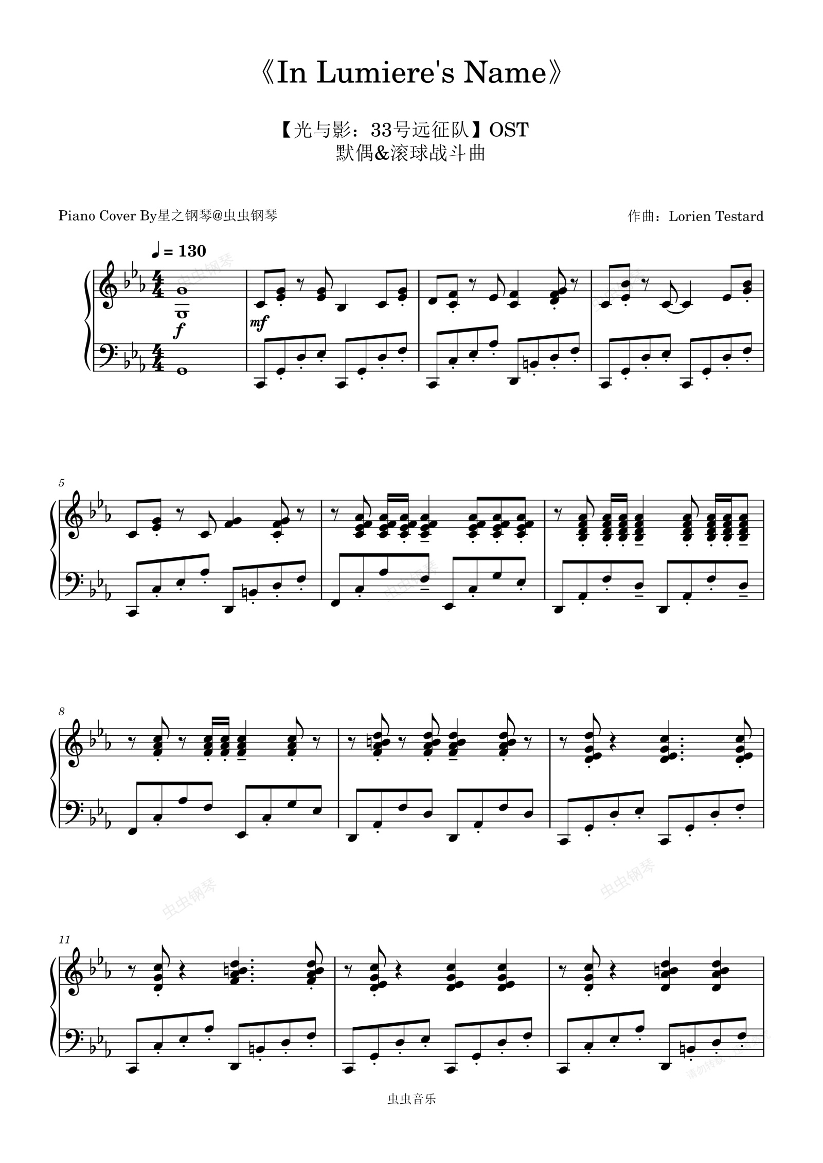钢琴谱:【光与影:33号远征队】默偶-滚球战斗曲《In Lumiere's Name》钢琴独奏版~星之钢琴~