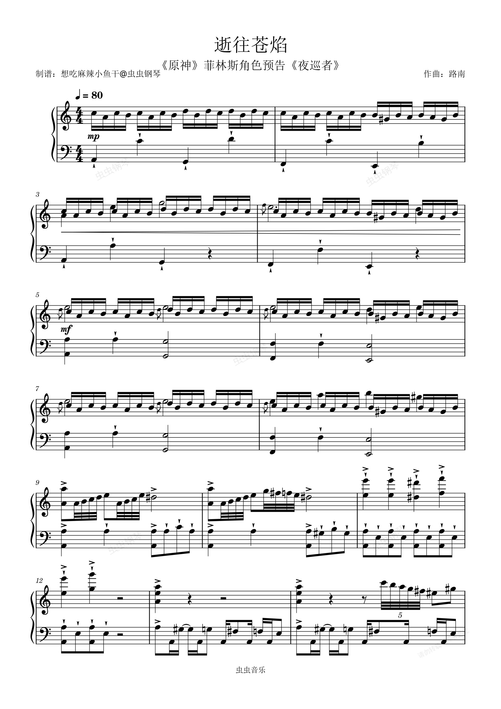 钢琴谱:逝往苍焰(《原神》菲林斯角色预告《夜巡者》)