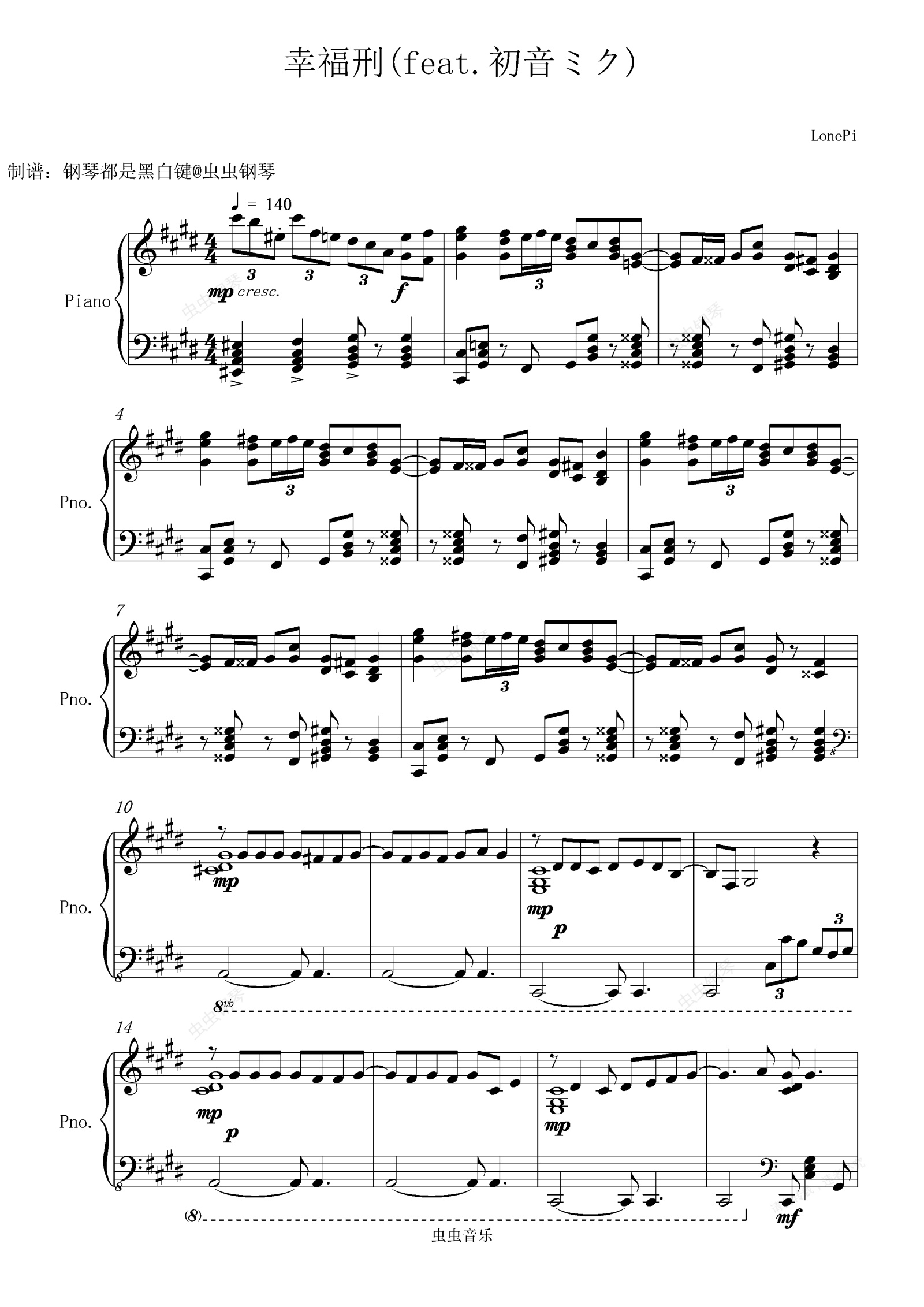 钢琴谱:(初音ミク)幸福刑