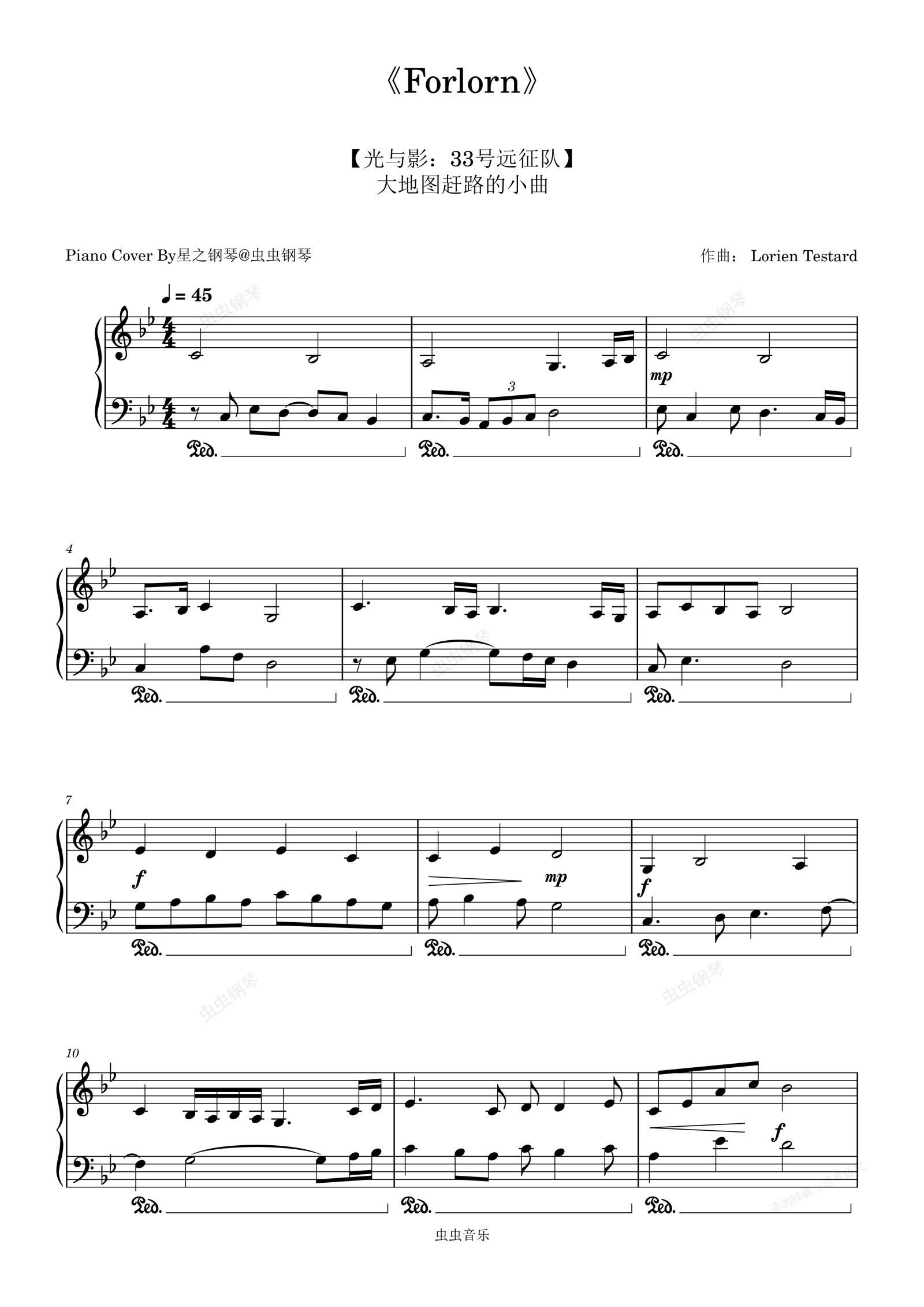钢琴谱:【光与影:33号远征队】大地图赶路的小曲《Forlorn》钢琴独奏版~星之钢琴~