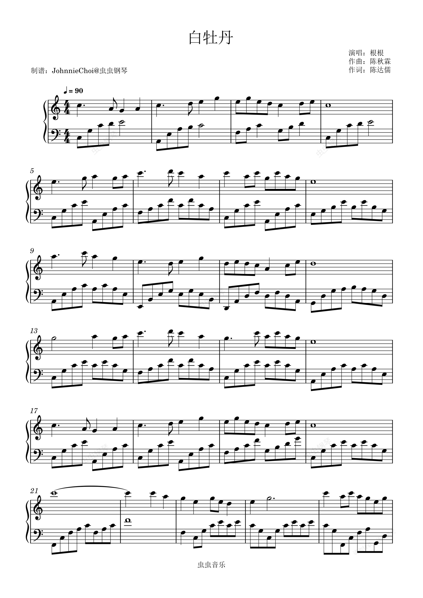 钢琴谱:白牡丹-根根-完整版