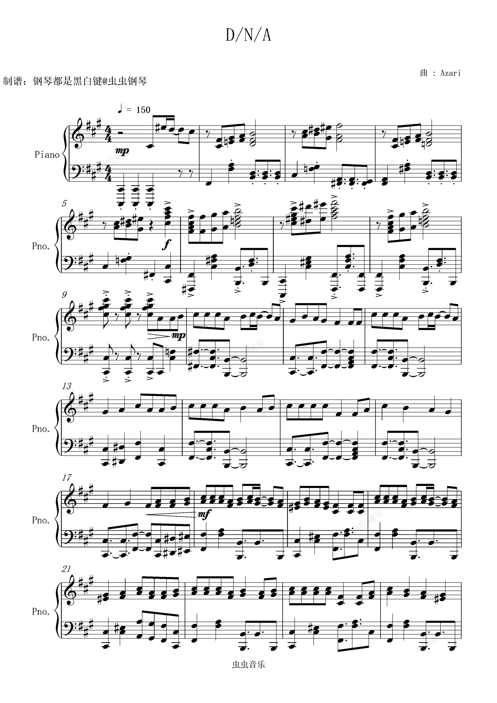 钢琴谱:【重音テト】D/N/A