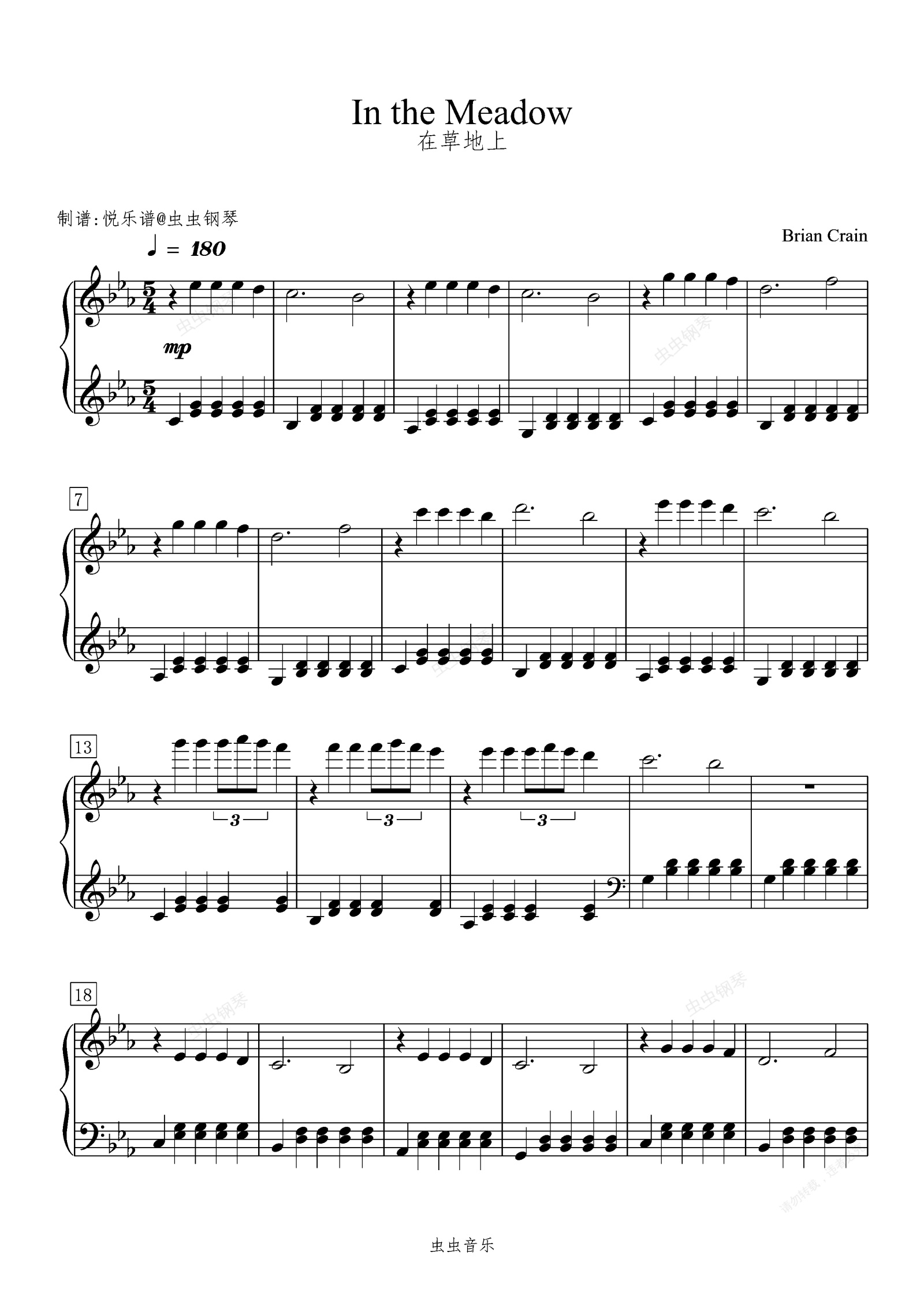钢琴谱:在草地上/In the Meadow 【抒情】