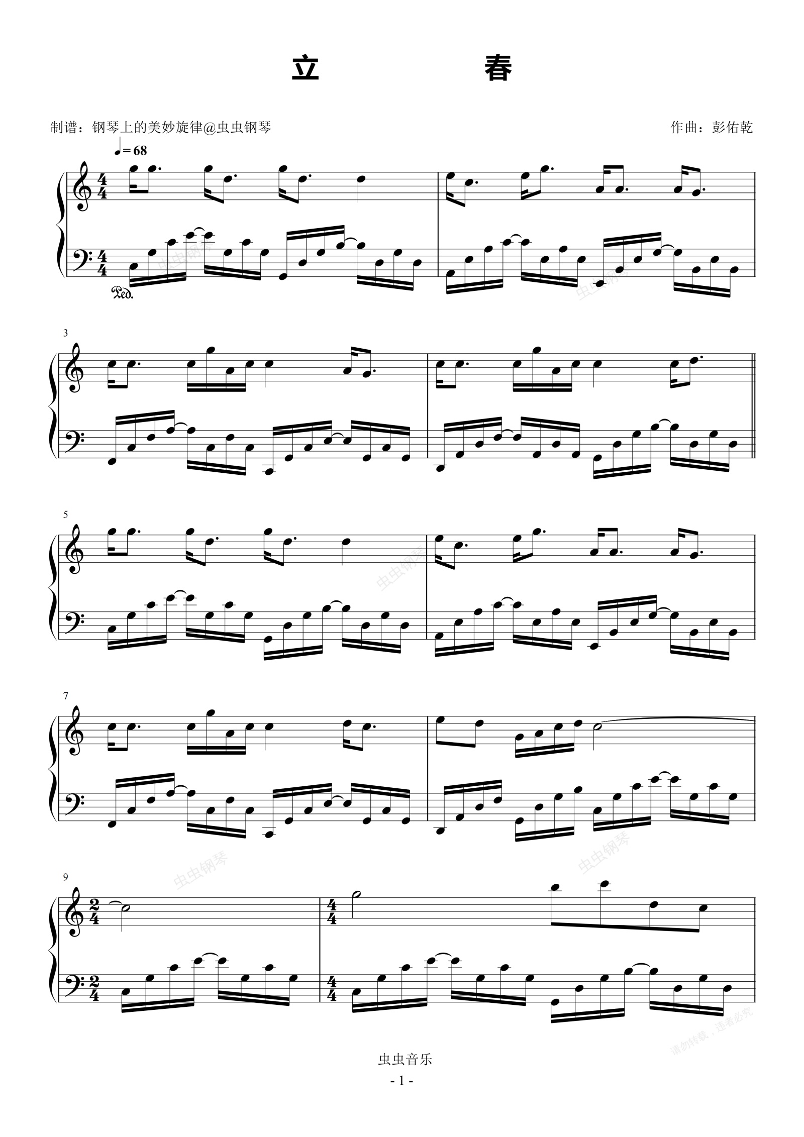 钢琴谱:立春 C调简易 周慧敏、刘敏涛、梁咏琪、秦海璐、薛凯琪、张钧甯、姜妍、热依扎、刘惜君、希林娜依高 2026年春晚歌曲