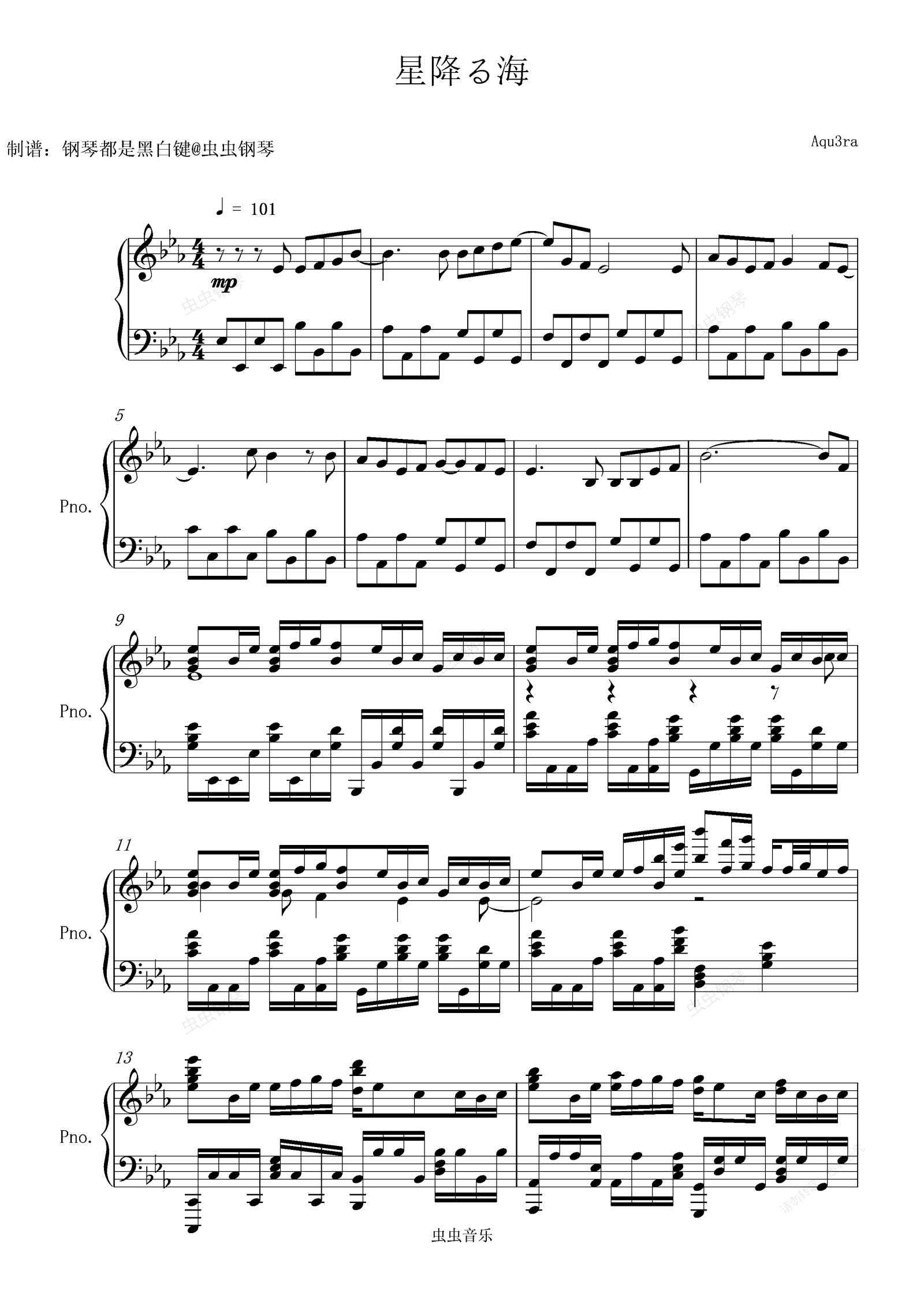 钢琴谱:【超时空辉夜姬】《星降る海》