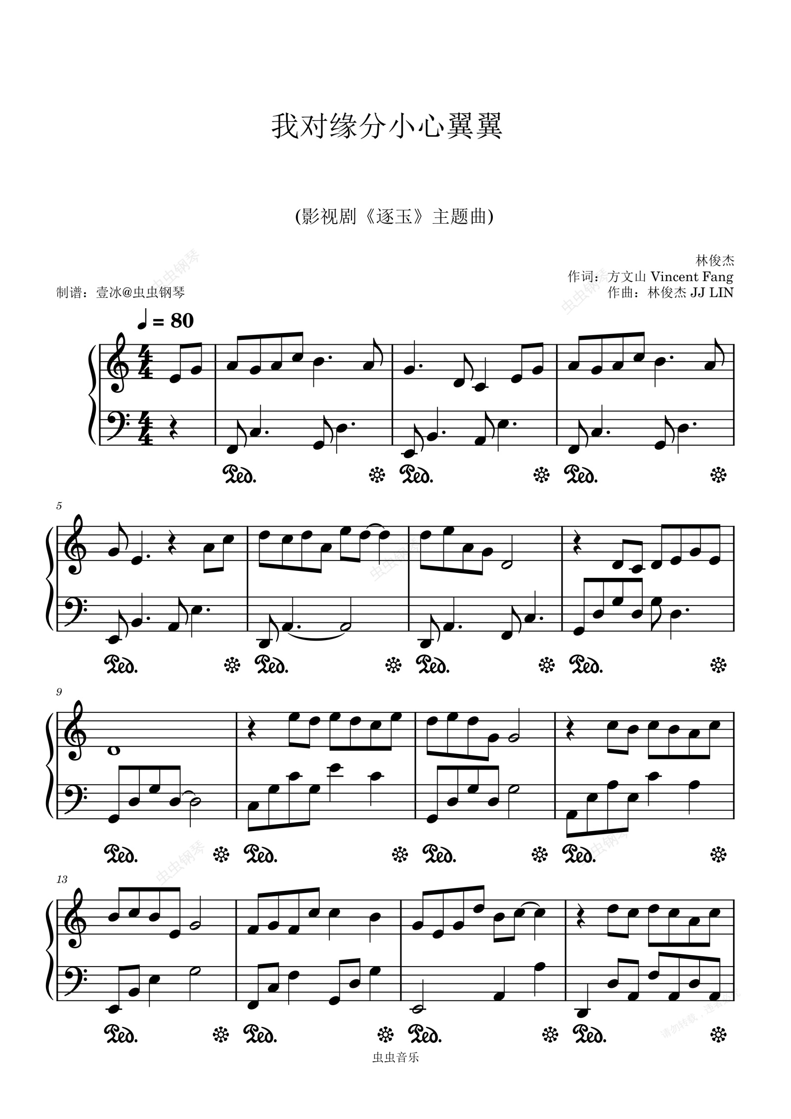 钢琴谱:我对缘分小心翼翼 (影视剧《逐玉》主题曲) - 林俊杰 C调