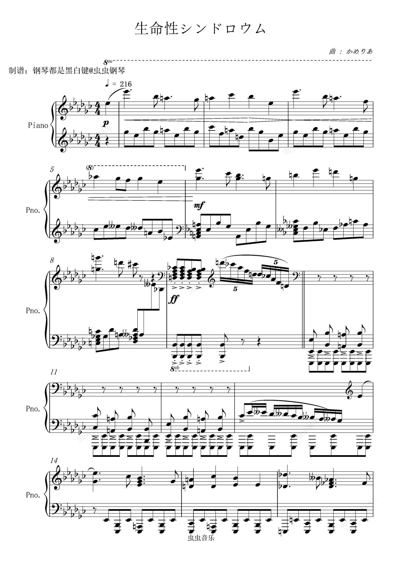 钢琴谱:(初音ミク)生命性シンドロウム / 生命性综合征