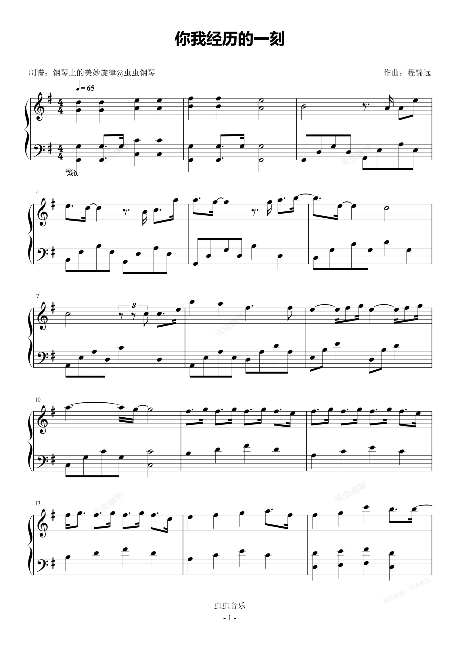 钢琴谱:你我经历的一刻 G调简易版 王菲 2026年春晚歌曲