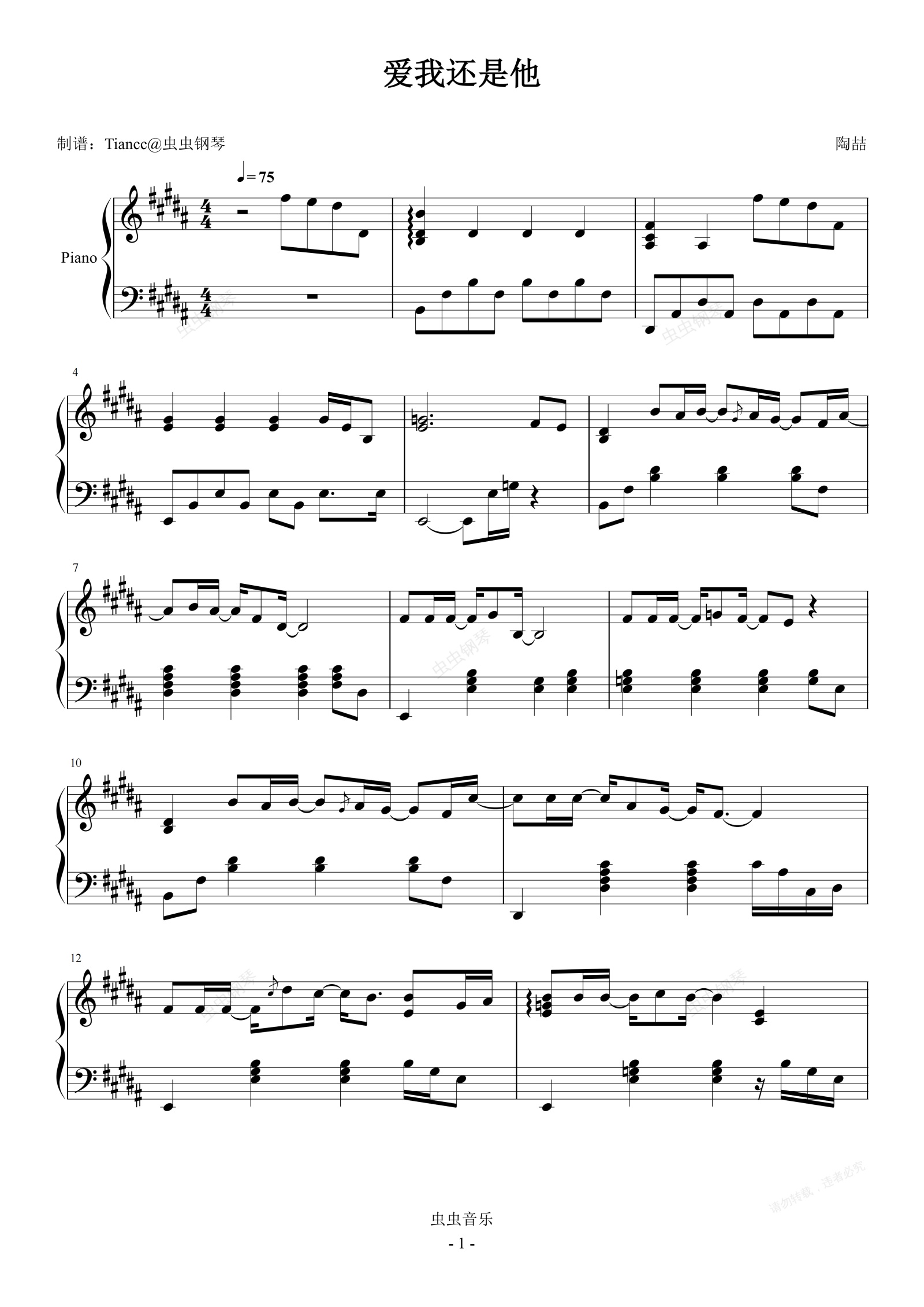 钢琴谱:《爱我还是他》陶喆,间奏好听啊