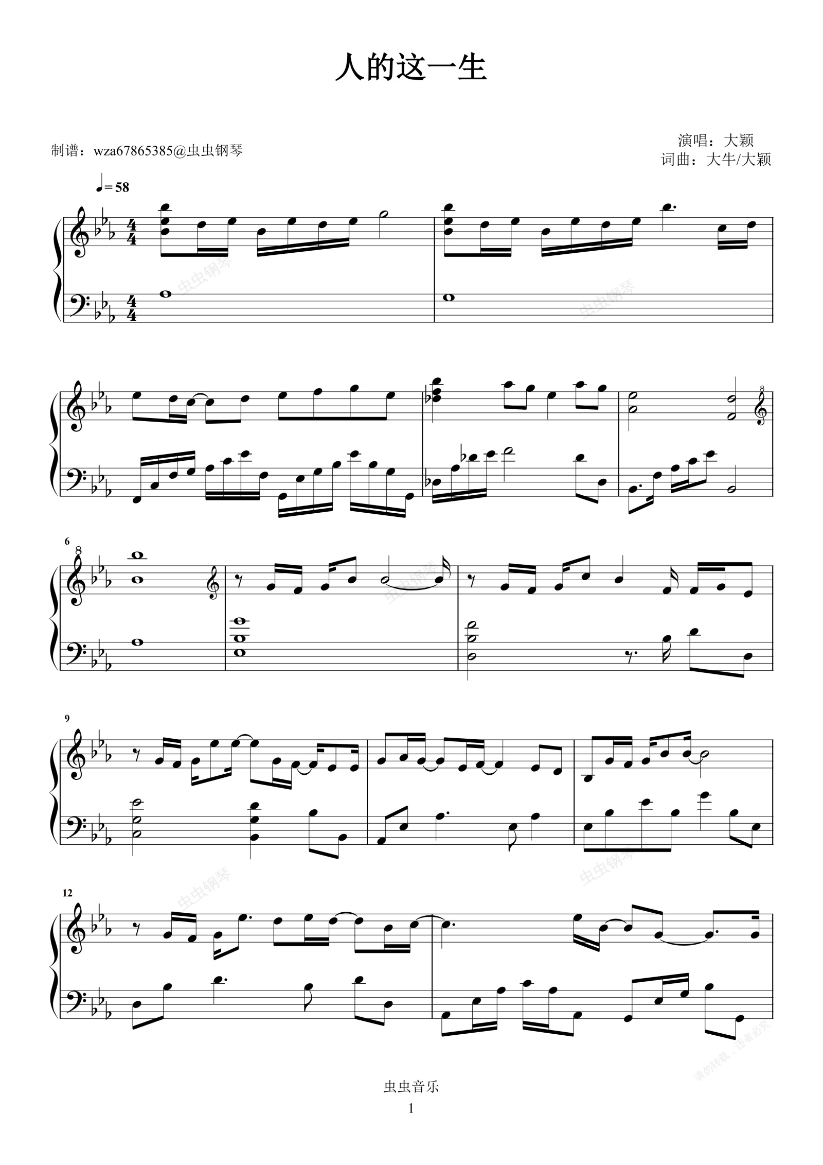钢琴谱:人的这一生