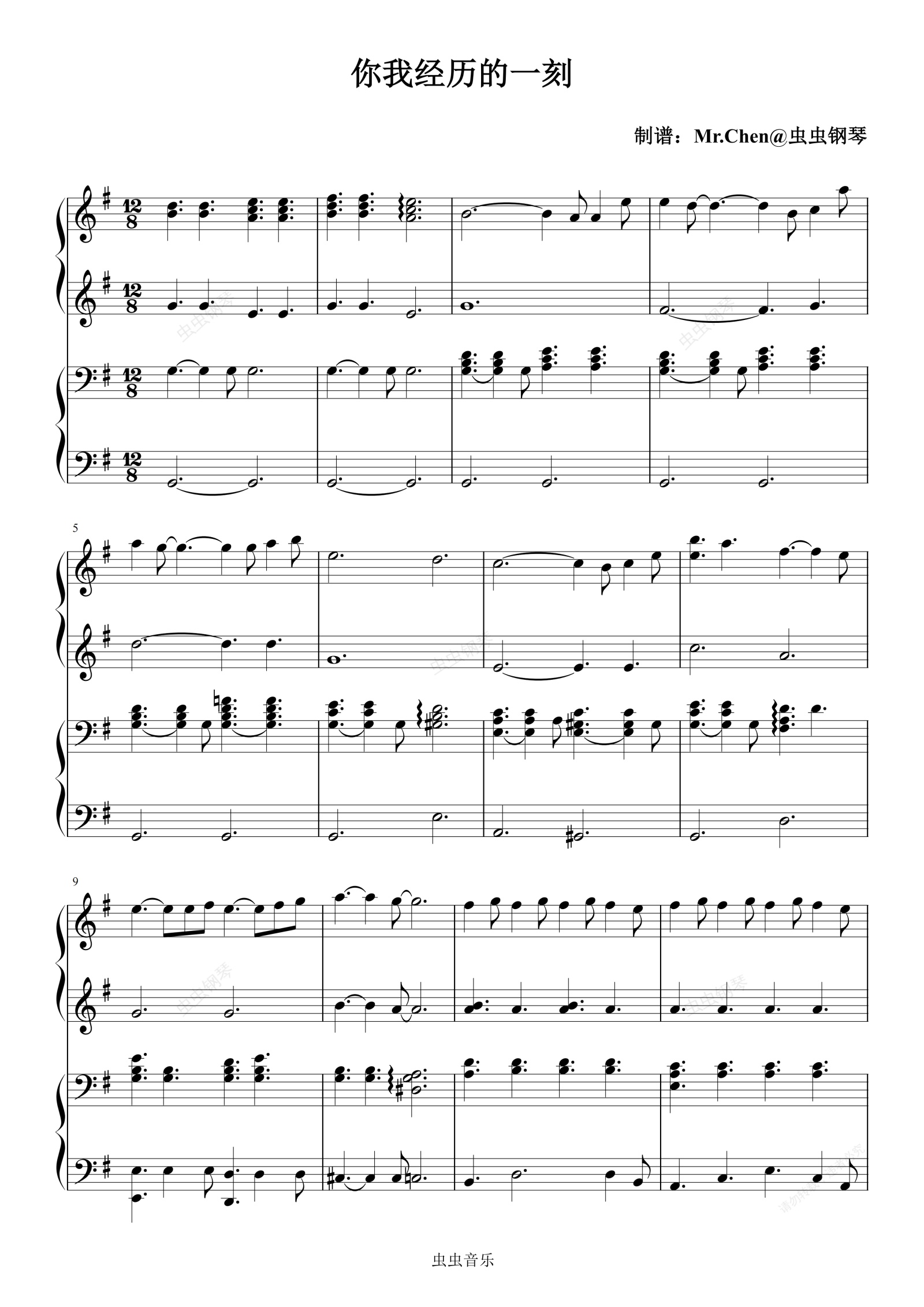 钢琴谱:你我经历的一刻 (四手联弹)G调 - 2026年春晚 王菲