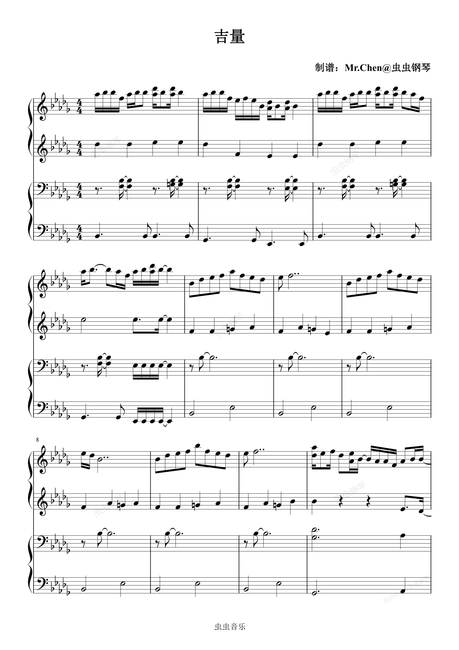 钢琴谱:吉量 (四手联弹)- 2026年春晚 周深