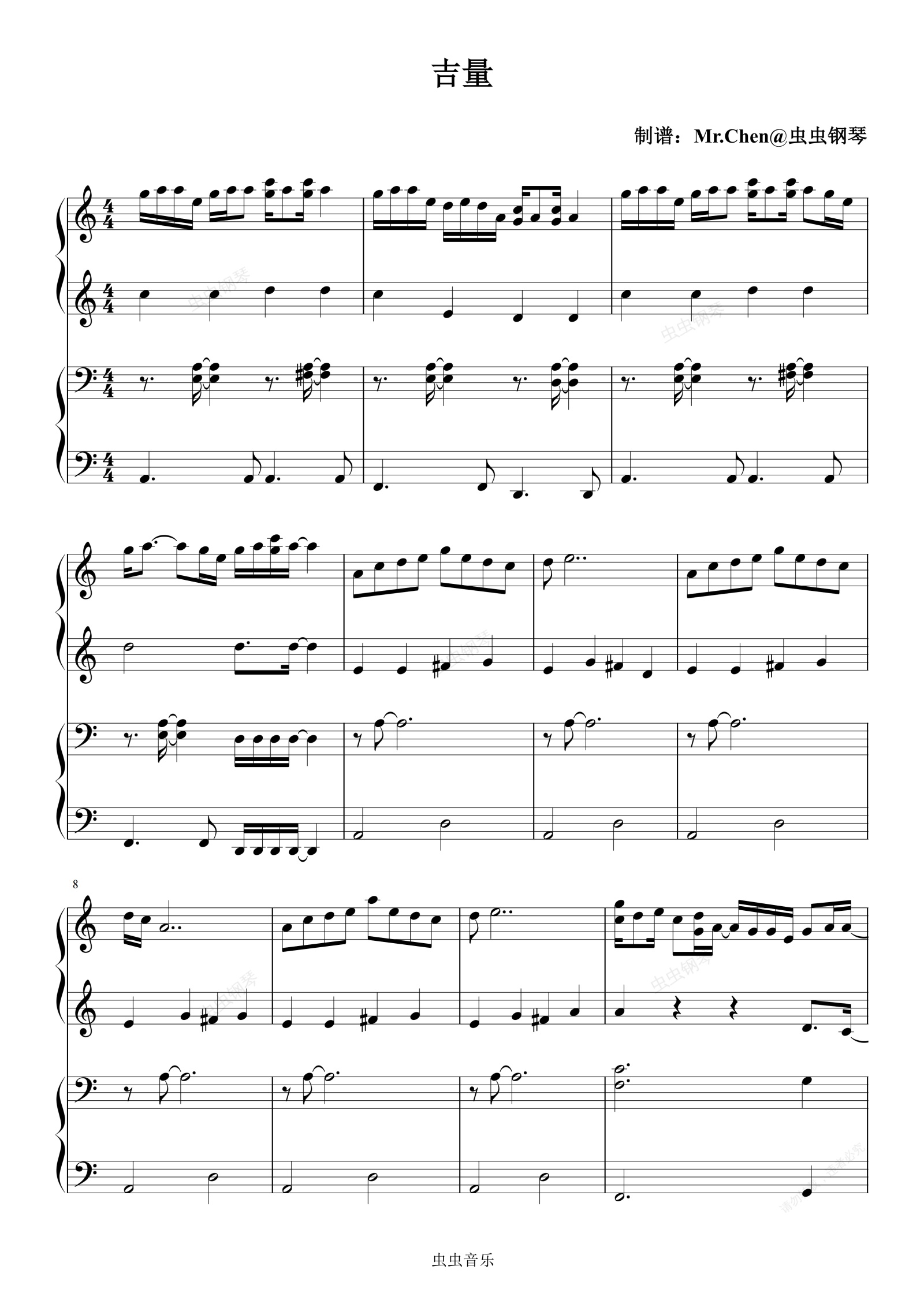 钢琴谱:吉量 (四手联弹)C调 - 2026年春晚 周深