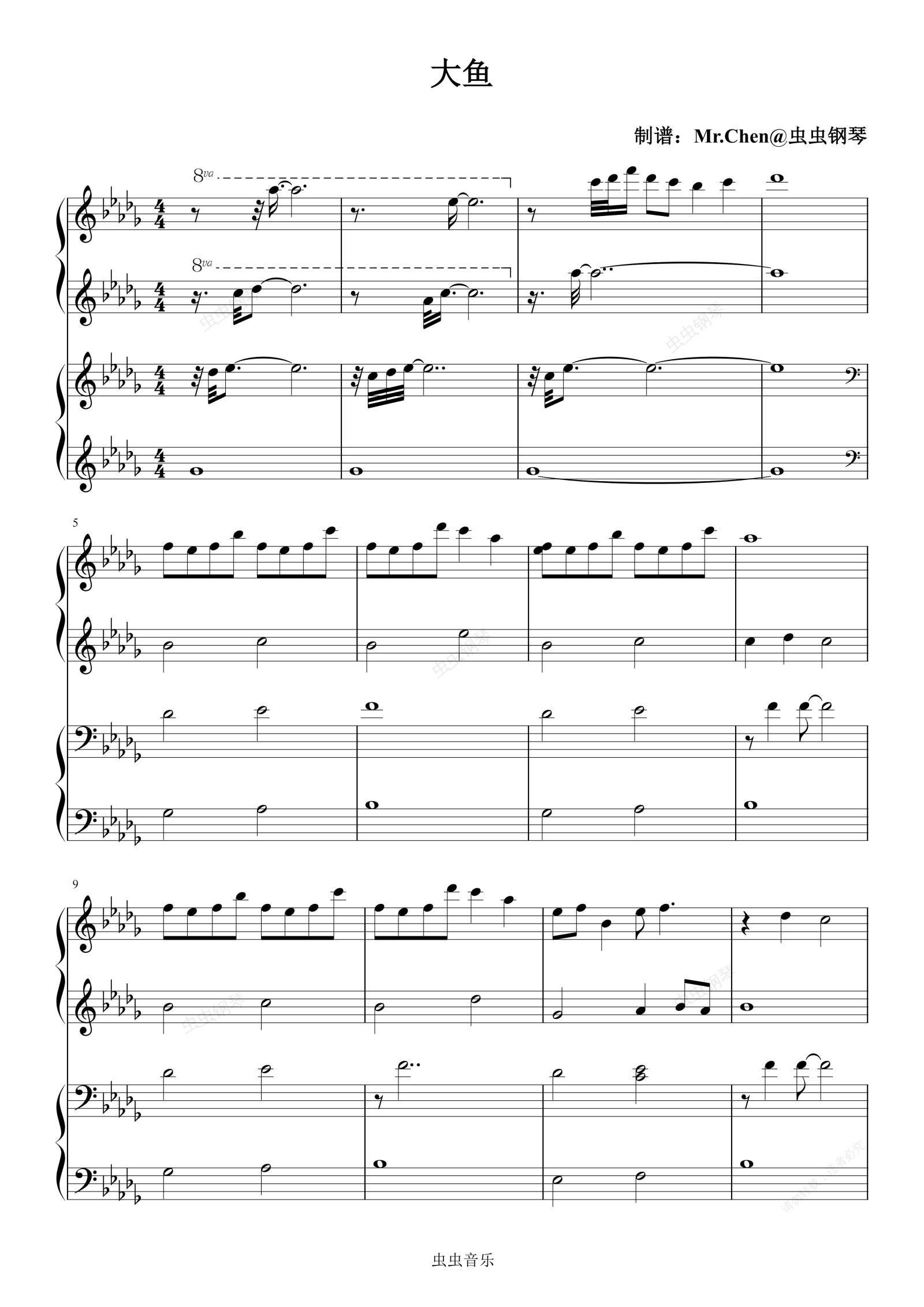 钢琴谱:大鱼 (四手联弹)- 周深 极度还原