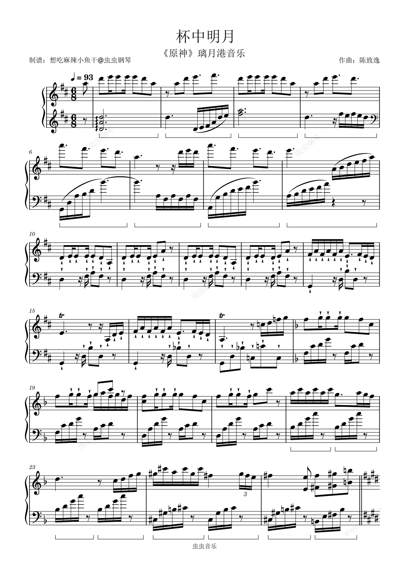钢琴谱:杯中明月(《原神》璃月港音乐)