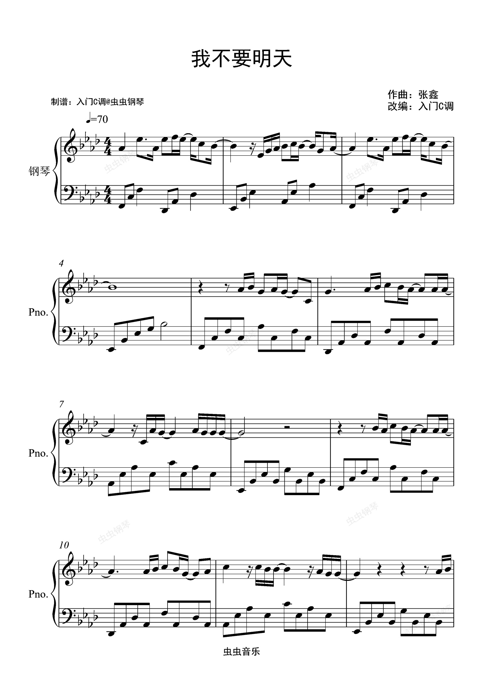 钢琴谱:我不要明天(《白月梵星》天火&慕九角色曲)—张鑫【原调简单入门版】