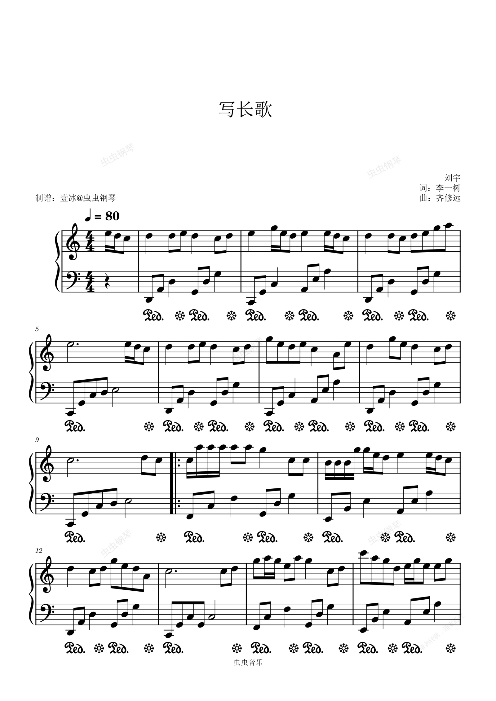 钢琴谱:写长歌 - 刘宇 C调
