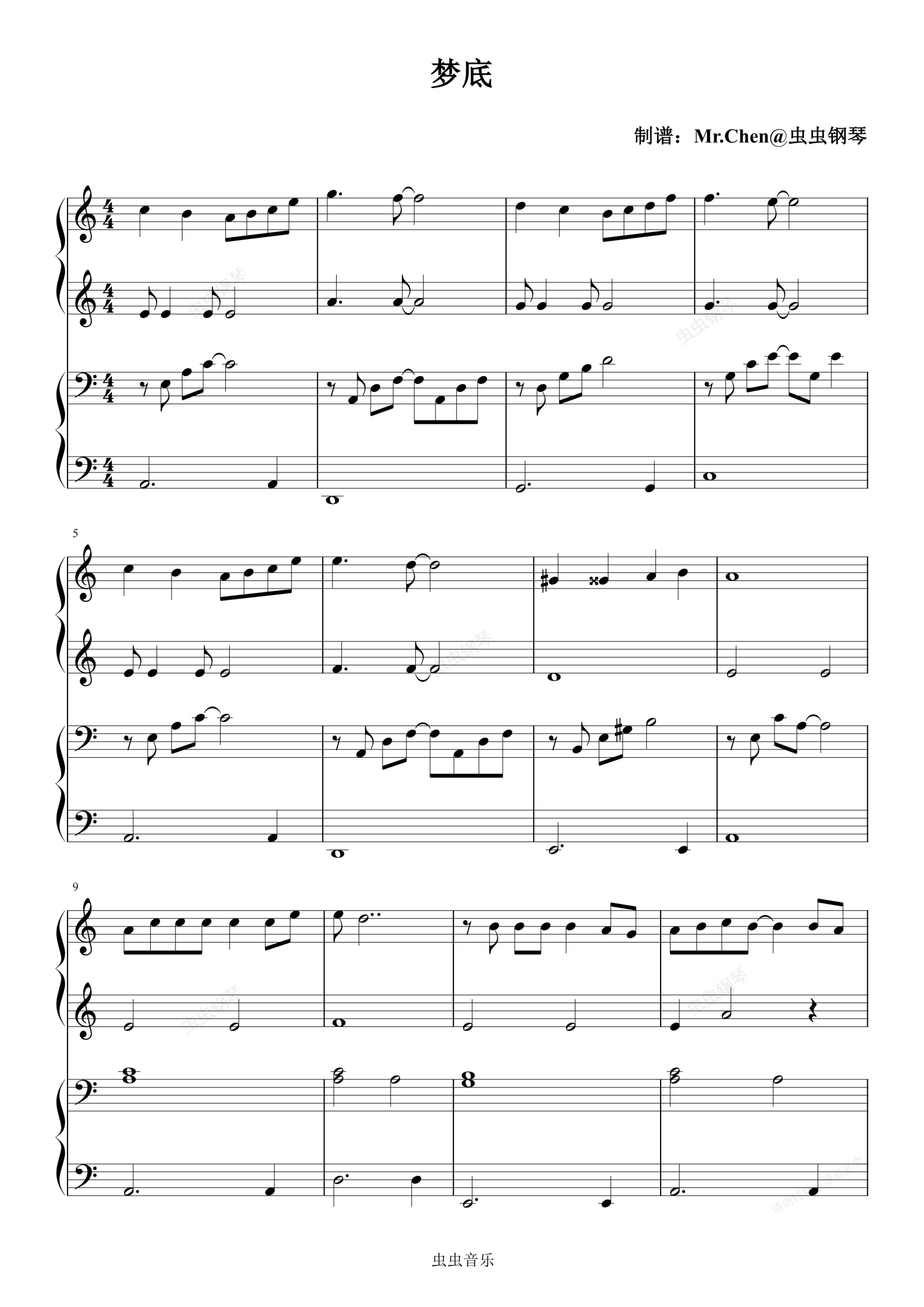 钢琴谱:梦底 (四手联弹)C调 - 2026年春晚 海来阿木