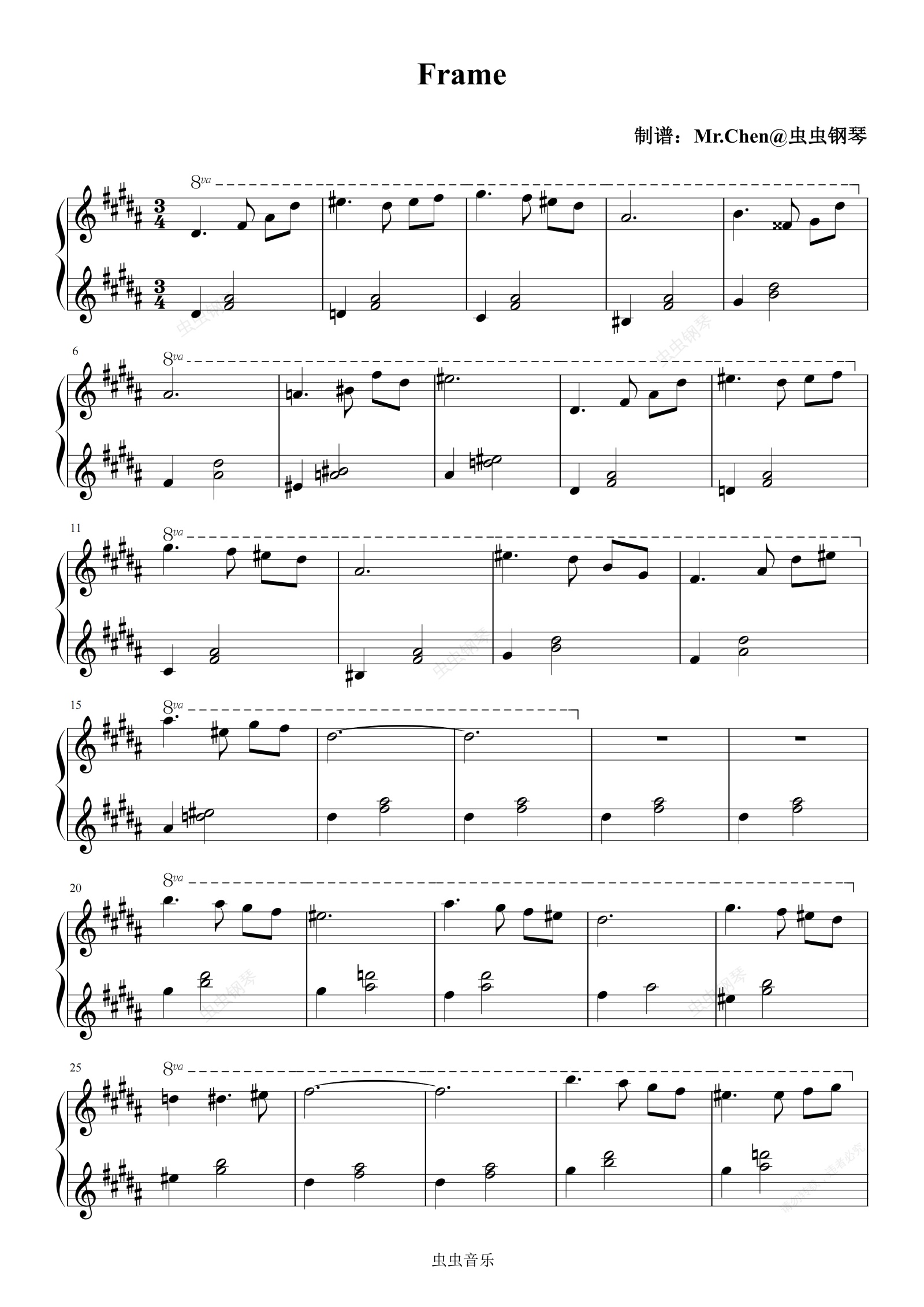 钢琴谱:Frame - 时空储蓄罐 极度还原