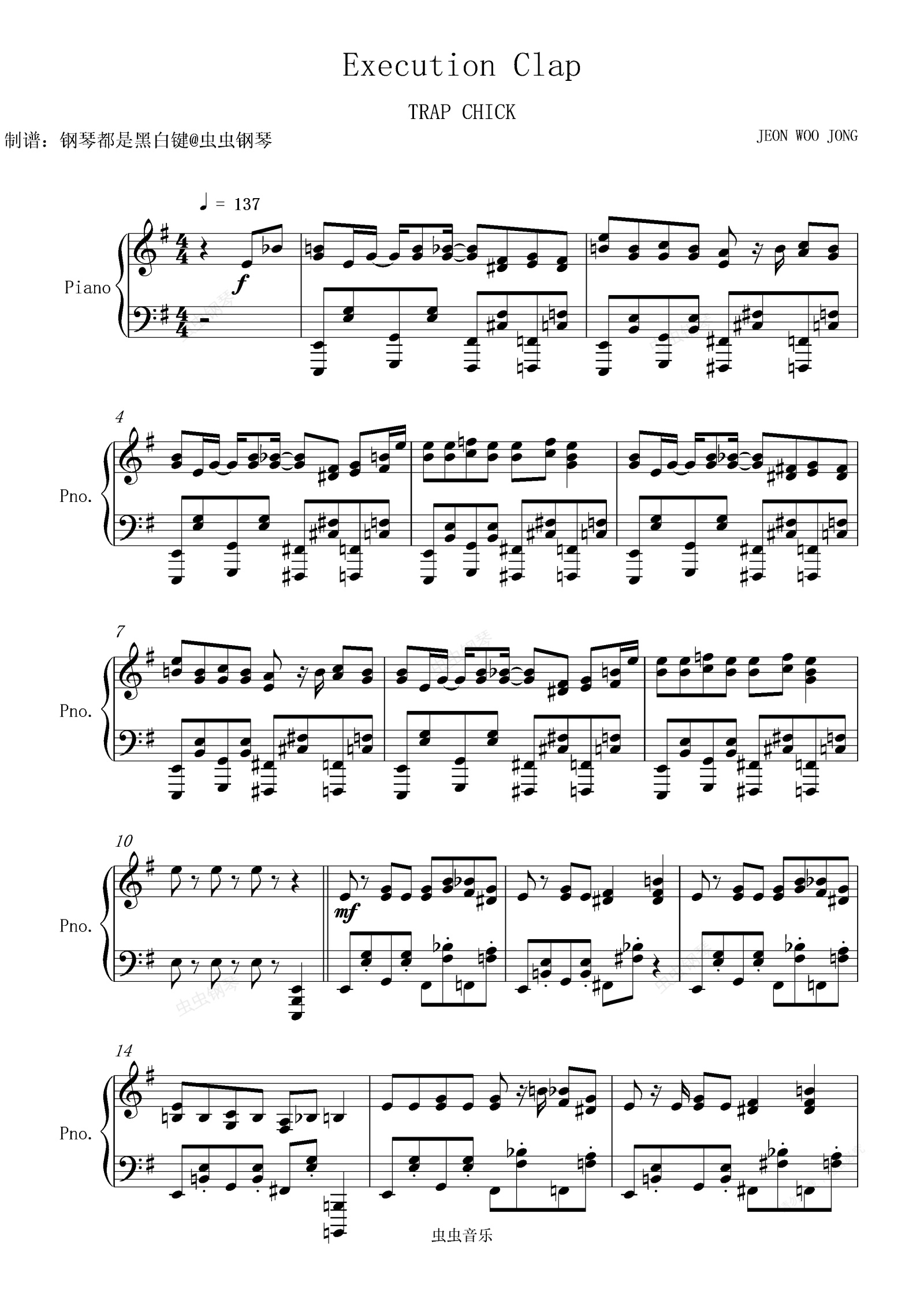 钢琴谱:【重音テト】处刑鼓掌/ Execution Clap