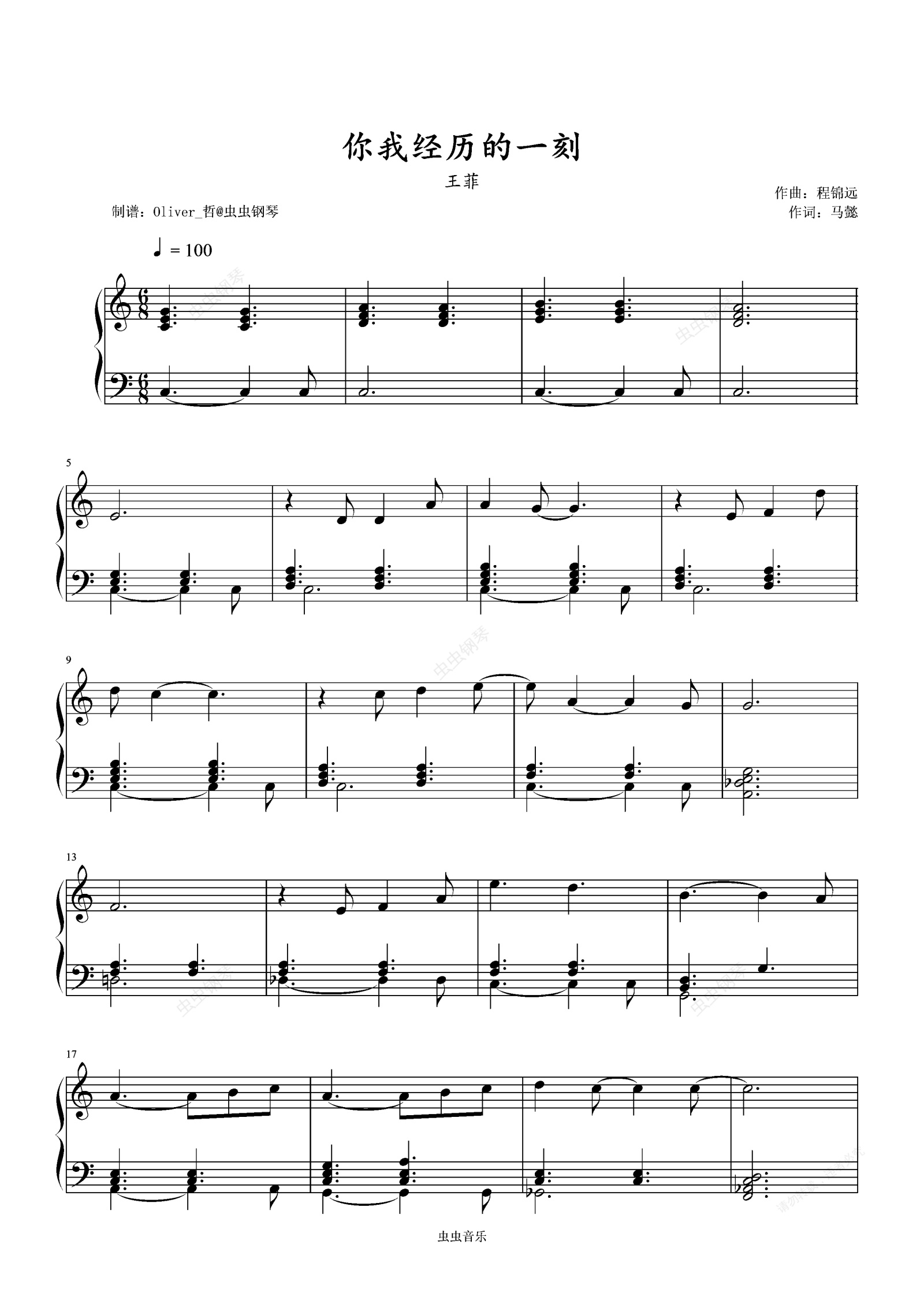 钢琴谱:你我经历的一刻 王菲 C调精编简易版(2026春节联欢晚会)网络热歌 好听易弹