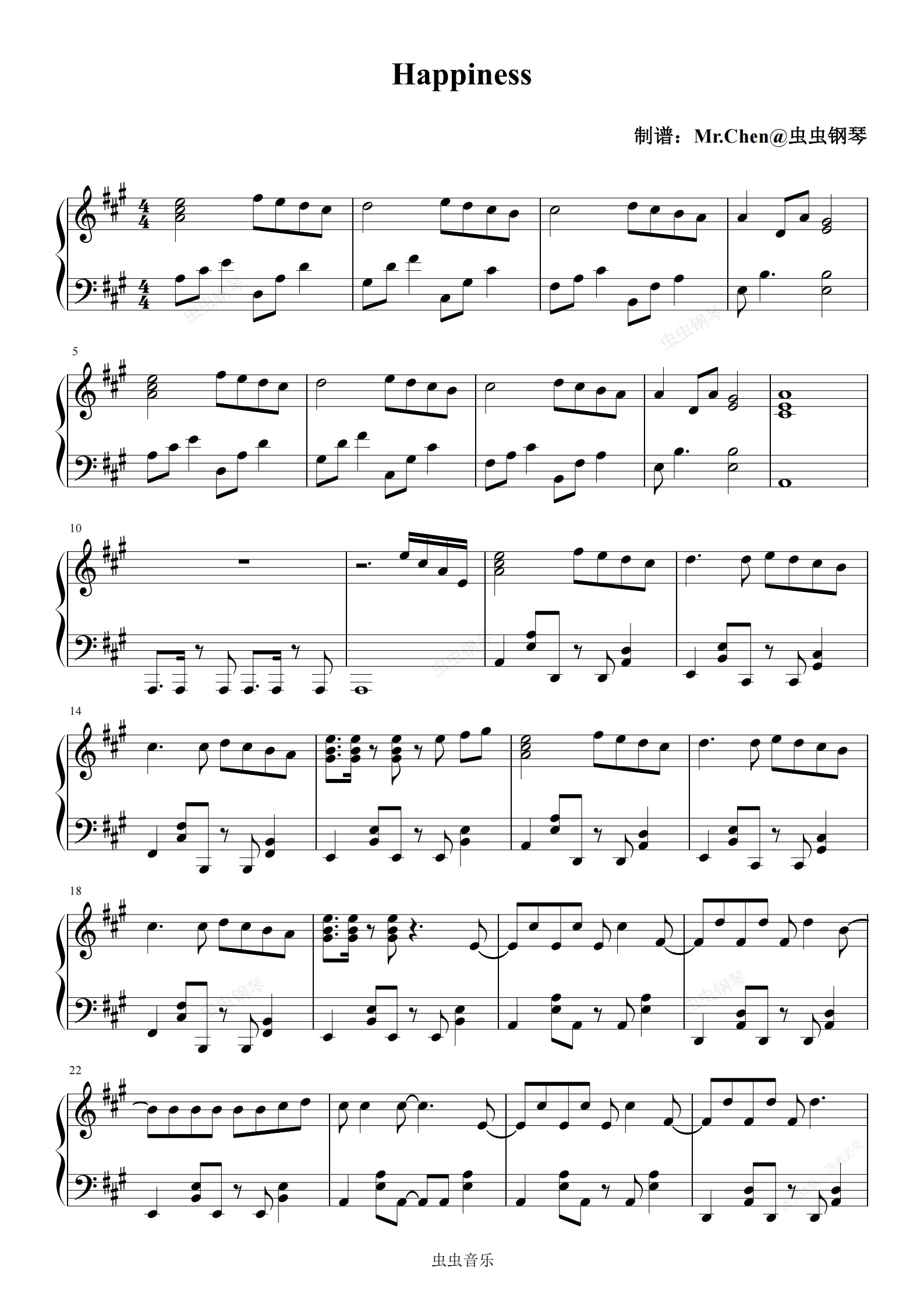 钢琴谱:Happiness - 初代男团 H.O.T 极度还原