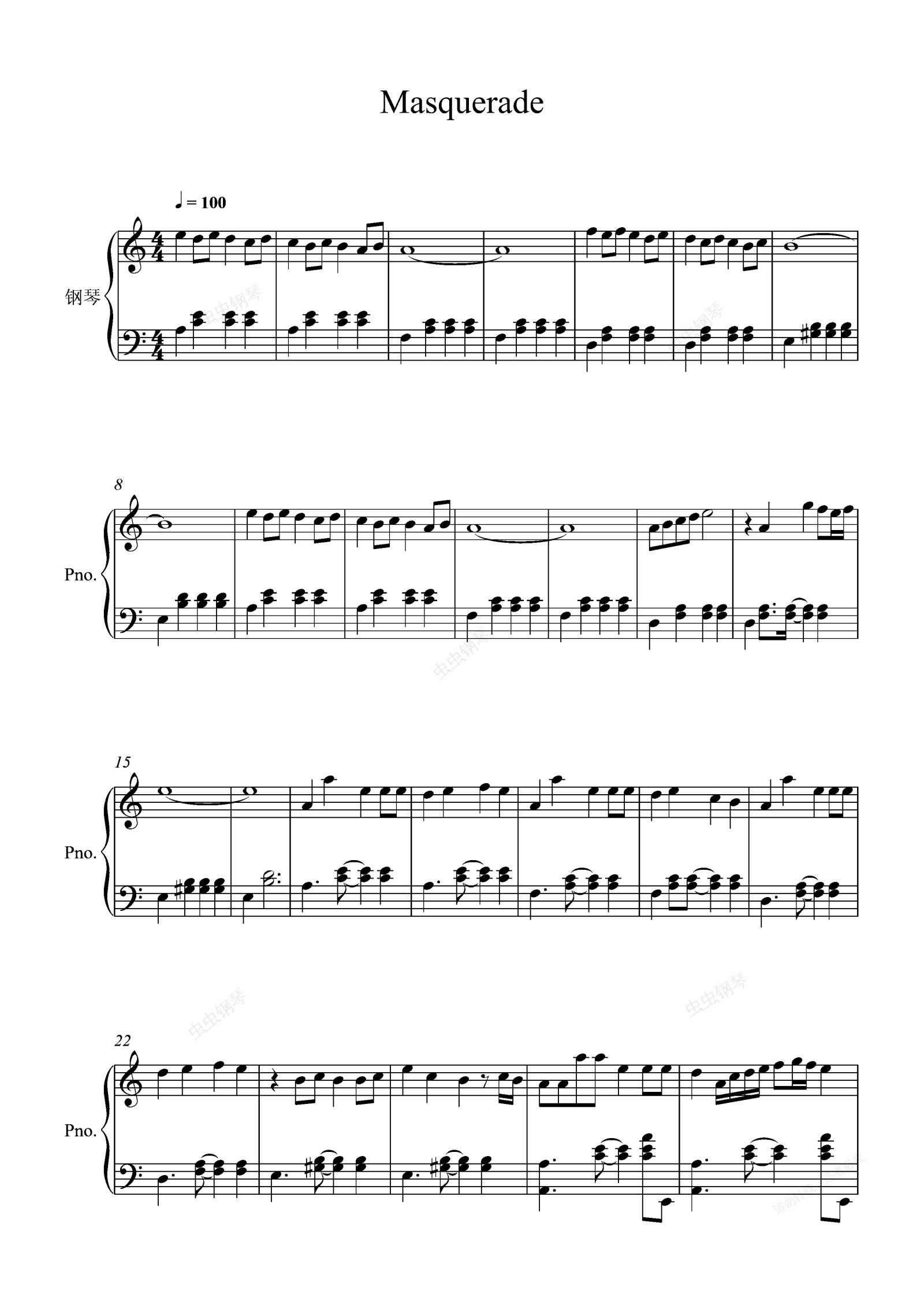 钢琴谱:Masquerade(假面舞会)