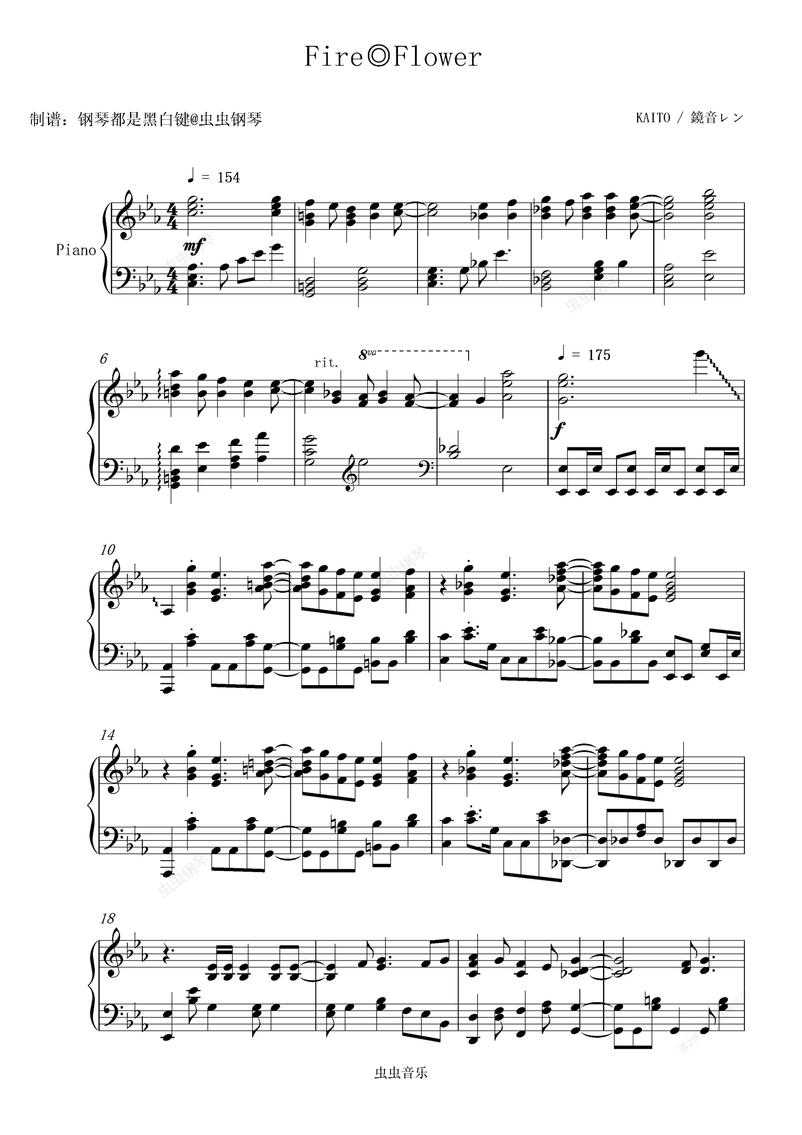 钢琴谱:【 鏡音レン】Fire◎Flower