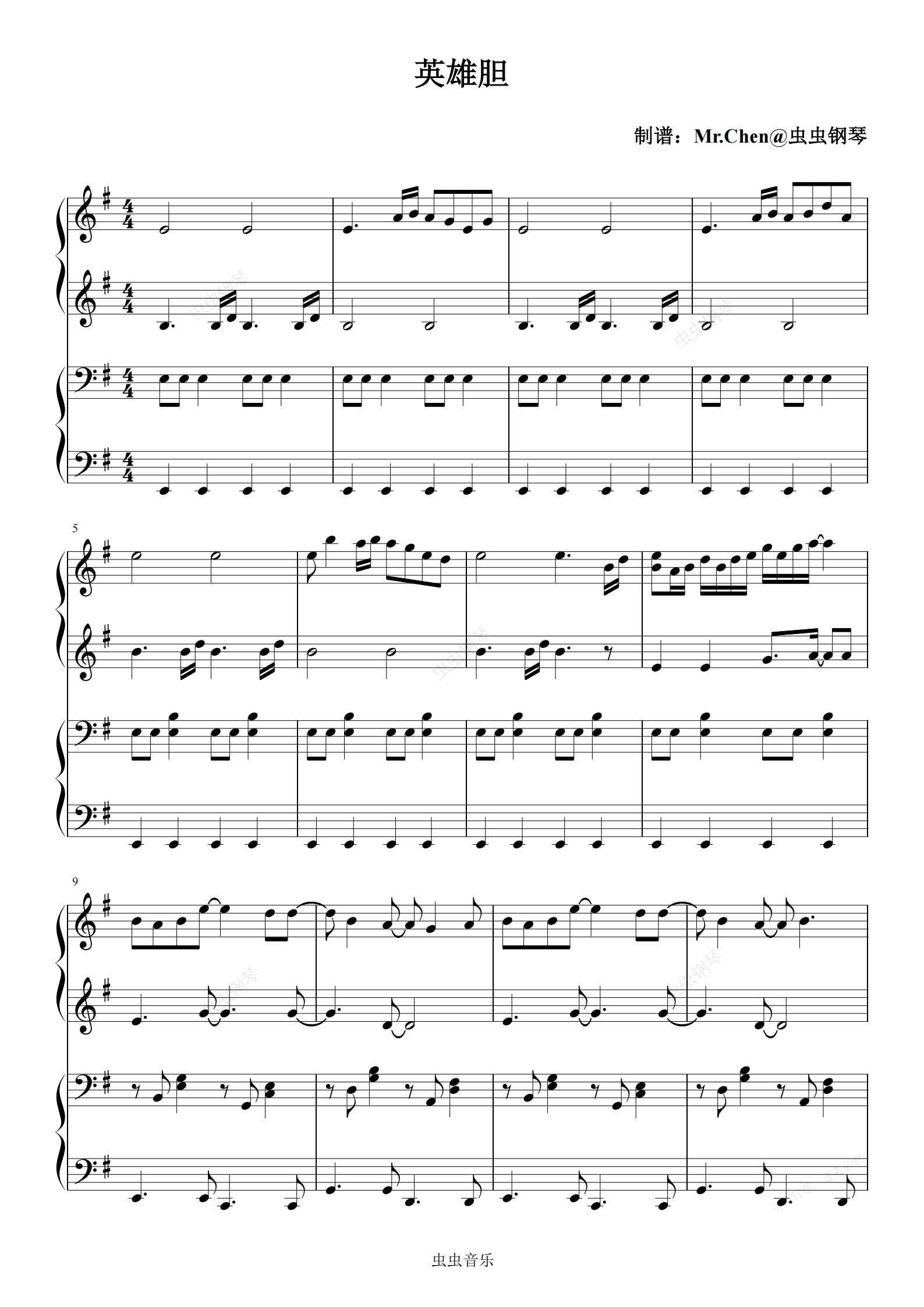 钢琴谱:英雄胆 (四手联弹)- 动画电影《熊出没·年年有熊》主题曲