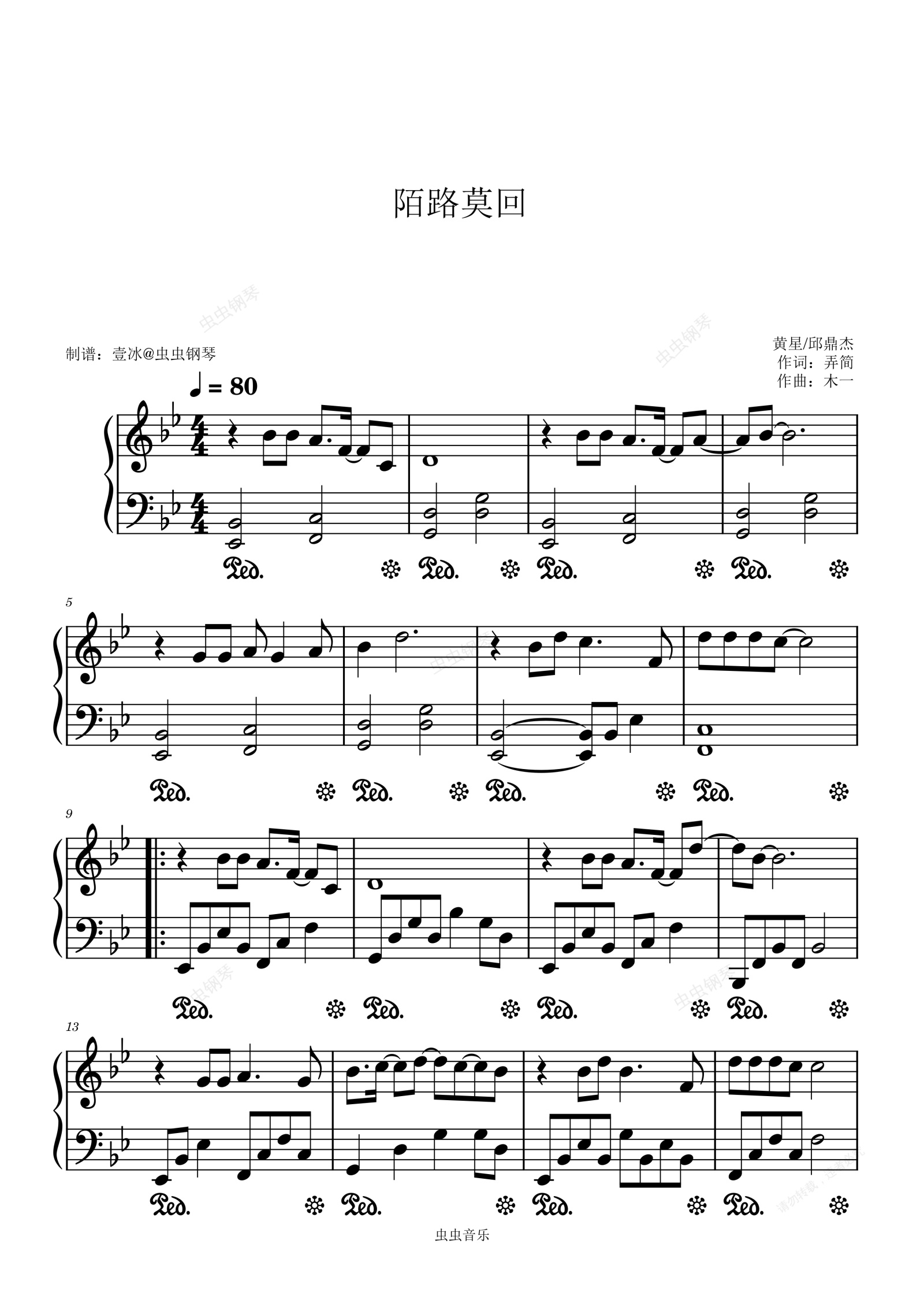 钢琴谱:陌路莫回-黄星/邱鼎杰 原调