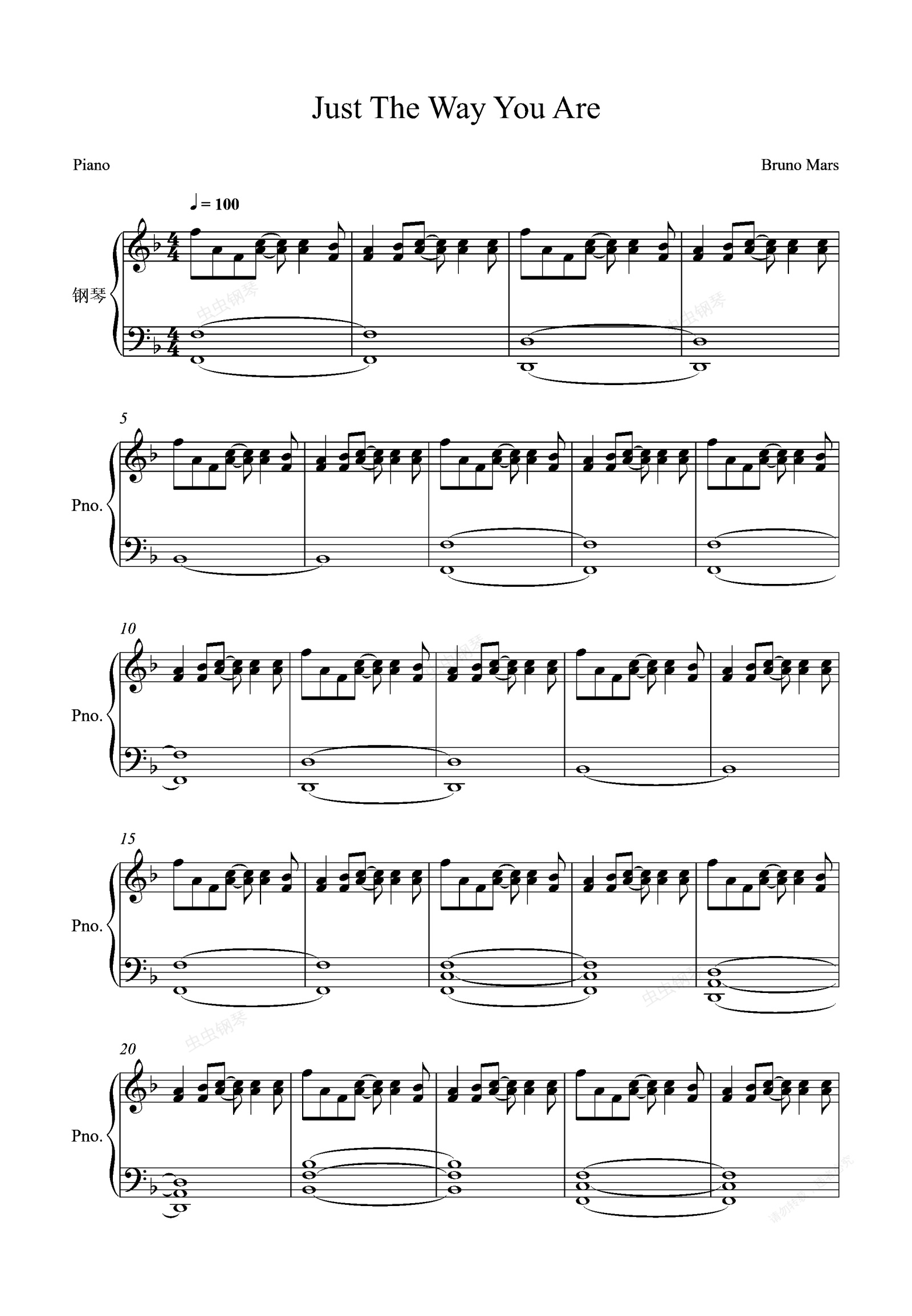 钢琴谱:Just The Way You Are