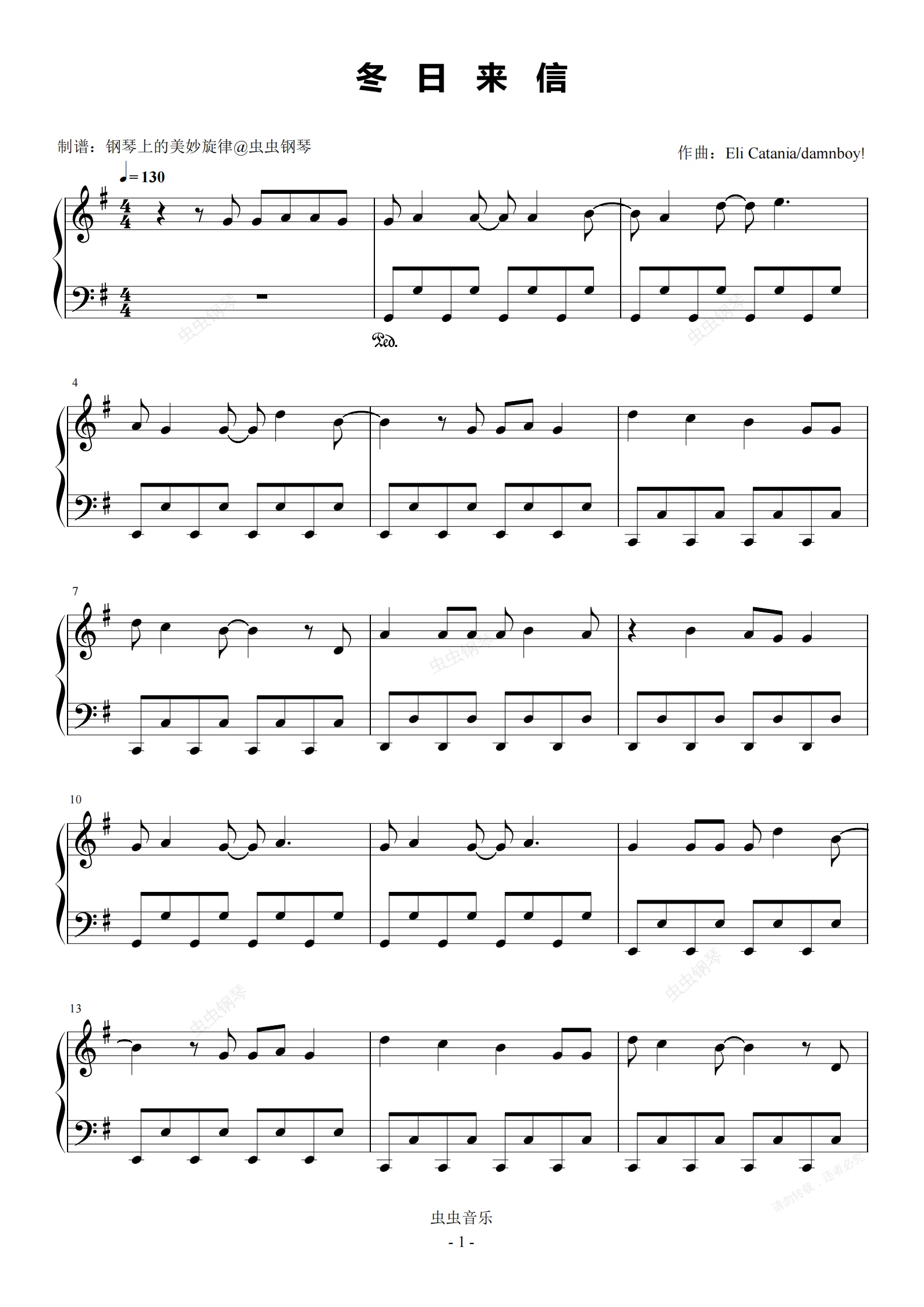 钢琴谱:冬日来信 原调简易版 时代少年团